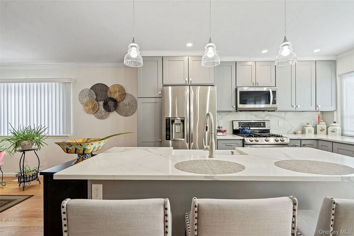 Fully renovated 2-bedroom, 2.5-bath townhouse featuring an open layout with sun-filled living and dining areas, sliding doors to a private deck, and central air. Modern kitchen with stainless steel appliances and center island. Wood floors throughout.