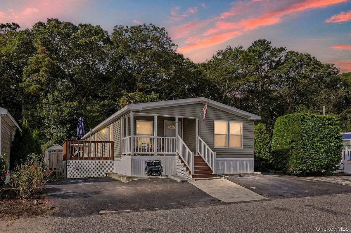 Welcome to this spacious, double-wide manufactured home in a private community offering 3 bedrooms and 2 full baths, including a master ensuite. Featuring an open floor plan with laminate flooring and carpeting, this home is designed for comfort and convenience. Enjoy an adorable front porch, sliders leading to a side deck, and a paver patio for outdoor living. Located near Riverhead outlets, Splish Splash, and North Fork attractions, the pet-friendly park welcomes all ages.