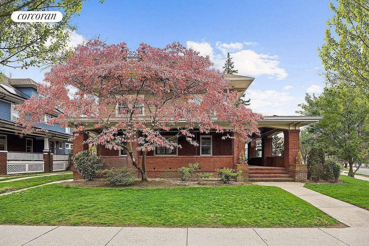 Welcome to 1806 Ditmas Avenue, a rare opportunity to own a beautifully preserved 5500+++ SF, 7 bedroom, 4.5 bath Colonial Revival home in the heart of Ditmas Park. Set on a prominent corner lot, this three-story residence blends historic charm with modern convenience, featuring a wraparound porch, expansive front lawn, back deck, a long private driveway and detached two-car garage.