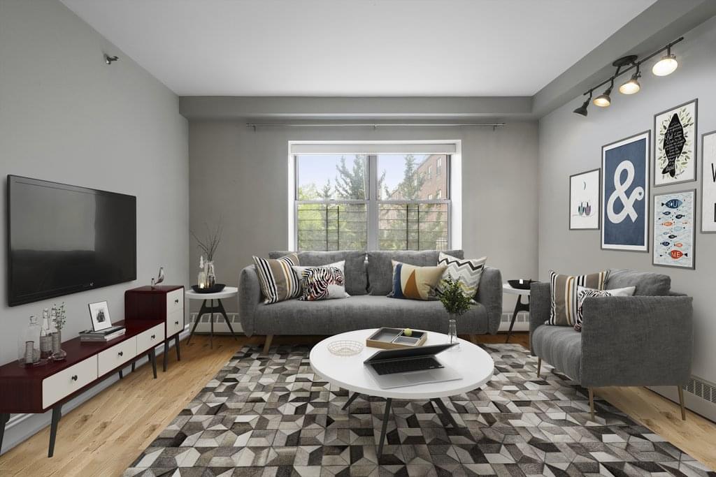 Have it all in this quiet, bright and renovated 2 bedroom, 2 bathroom home with tree and garden views. Designer chef's kitchen features; Diamond cabinets, Caesarstone/Quartz countertops with under-counter lighting and breakfast bar, stone backsplash, Liebherr refrigerator, Bosch dishwasher and GE Gas range with Zephyr hood. Modern design features throughout the apartment include; recessed lighting, Elfa custom closets, through wall air conditioners with Nest thermometer and motorized blackout shades. There are two tiled bathrooms with upgraded vanities and medicine cabinets. Hardwood flooring throughout with stone tile flooring in the kitchen. Must see and move-in ready!