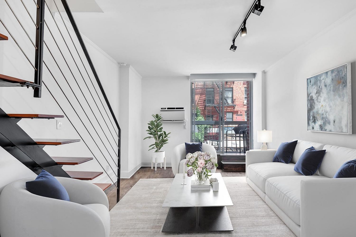 Welcome to 184 Thompson Street, a stunning SECOND FLOOR duplex located in a loft-like building in the heart of Greenwich Village. This unit functions as a two-bedroom apartment with two, extra-large rooms - the primary with a large window overlooking Bleeker Street, and the second - a fully ventilated sleeping/office/den, including a giant walk in closet. The high ceilings, exceeding 8.5 feet, amplify the sense of space and openness throughout. The thoughtfully converted duplex extends to the third floor, ensuring privacy and comfort with its two-bedroom layout. The unit boasts a balcony, providing a delightful outdoor retreat.