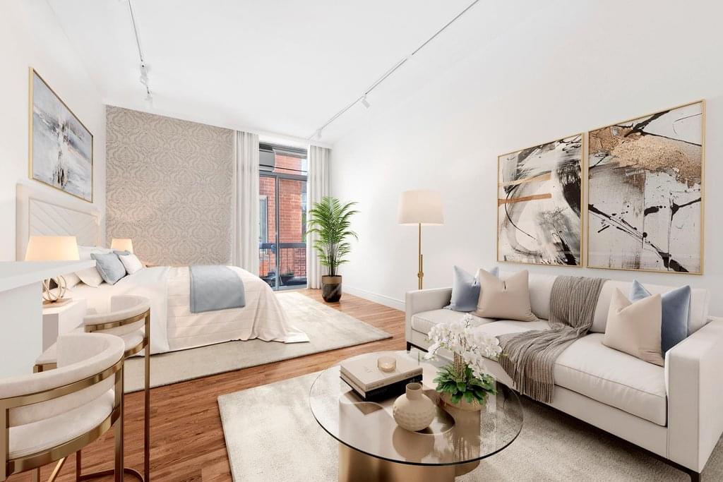 Nestled on 184 Thompson Street, this fully renovated doorman condo building is just a stone's throw away from Soho, Washington Square Park, and NYU. This chic studio apartment features a spacious layout and a brand-new stainless steel kitchen with sleek Caesar stone countertops. The East-facing balcony provides a sunny retreat, high above the lively streets of Thompson and Bleecker. The modern bathroom presents refined features-Cherry wood cabinetry, Timor stone tile floors, and stone tile walls-that effortlessly elevate your daily routine.