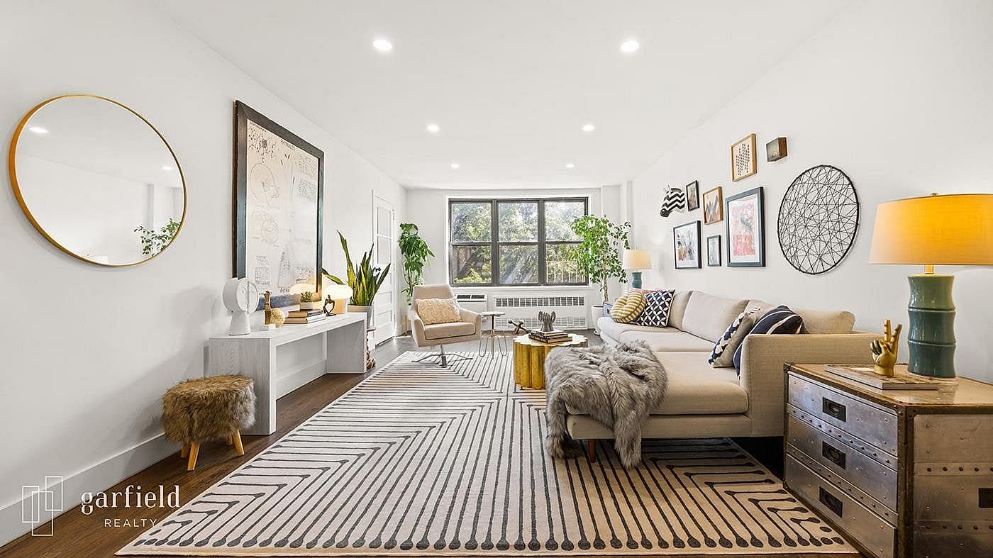 Enjoy lovely treetop views overlooking Prospect Park from this sun-filled, renovated two-bedroom, two-bath home offering 1,334 square feet of thoughtfully designed living space, perched on the fifth floor of a post-war elevator co-op.