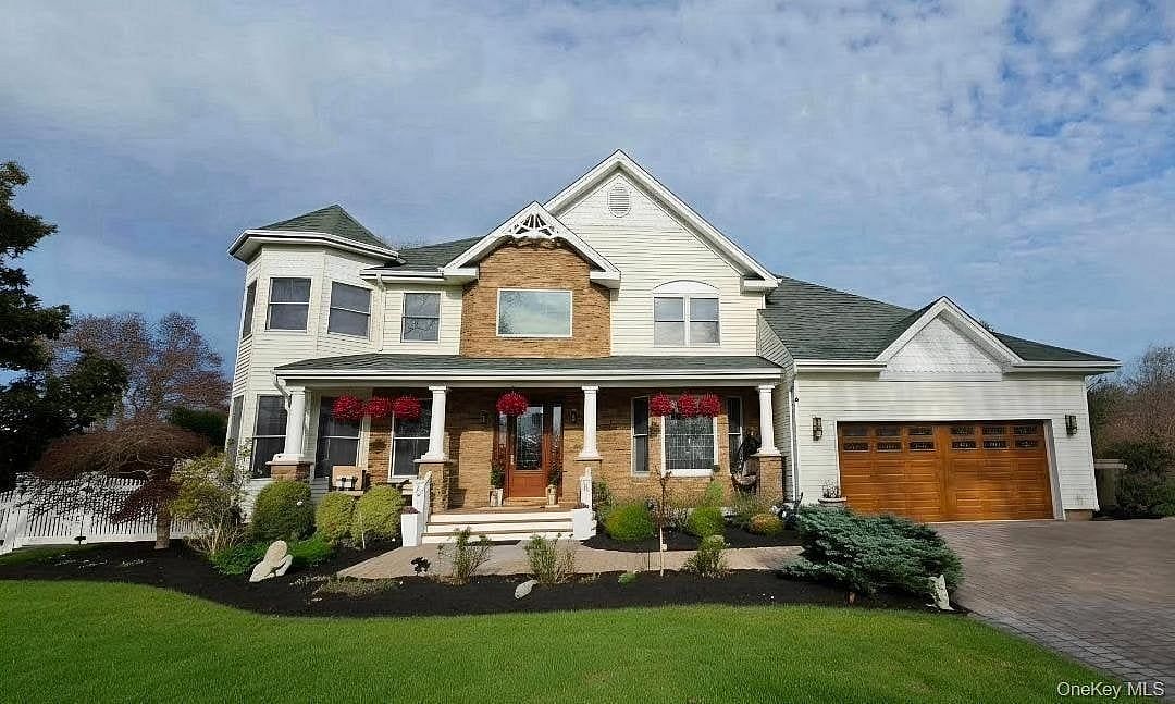WATERFRONT Luxury Living in highly desired West Islip at an attainable price point for the area! Ideally situated on almost 3/4 of an acre with 100 ft of serene waterfront on the private, quiet canal letting out to the well-known, highly coveted "safer waters" of Babylon Cove and then further to the Great South Bay. This AMAZING 5 Bedroom, 3.5 Bath turreted Colonial boasts 3400 sf of living space, overflowing with classic custom accoutrements throughout and is positioned perfectly on the grandest custom landscaped resort style property! From the moment you arrive the inviting energy of the trex decking front porch draws you to the front entry when inside you are greeted with the grandest high ceilings and custom staircase! The eat in Chef's kitchen with VIKING appliances, the light and bright FDR, the expansive Formal Living Room, the Family Room with classic gas Fireplace, the Primary Bedroom with En Suite Spa bathroom, 2 walk in closets, and French door sliders to balcony... ALL ANSWER EVERY PRAYER FOR THE PERFECT HOME! The garage space is huge, the gas boiler is the hi efficiency Navien, generator already installed, the roof is 5 YEARS YOUNG, the Beautiful Pool is Heated, salt water, with waterfall grotto feel, Outdoor Kitchen... ENDLESS AMENITIES! TOO MUCH TO LIST ALL! Come see for yourself before the opportunity is GONE!!!