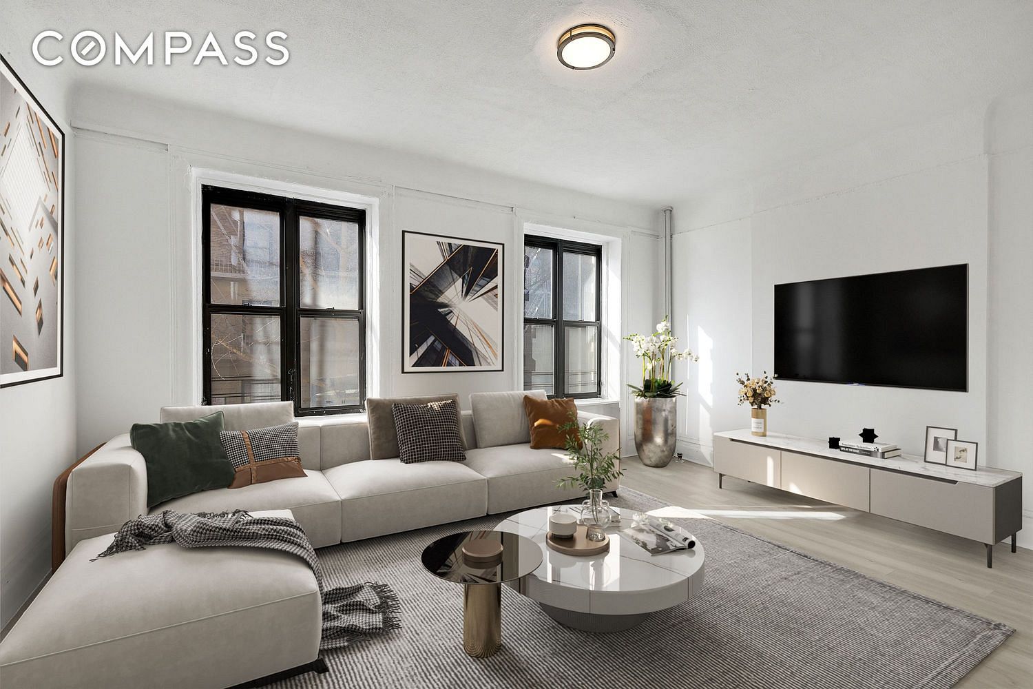 Looking for a home that's ready to accommodate your art collection, grand piano, home office and out-of-town guests? Come and see this very spacious apartment with soaring ceilings in a well-run, pet-friendly HDFC coop just three blocks from Central Park! The coop is very renovation-friendly: washer and dryers are permitted as are HVAC systems with board approval, and the unit has water lines in place for a second full or half-bath. Flip tax is 5% of profit (if any) on resale, payable by seller. A visually stunning prewar coop with 35 units and video intercom, 1864 Adam Clayton Powell Blvd is a wonderful place to call home. Bike room and storage cages planned for later in 2025!