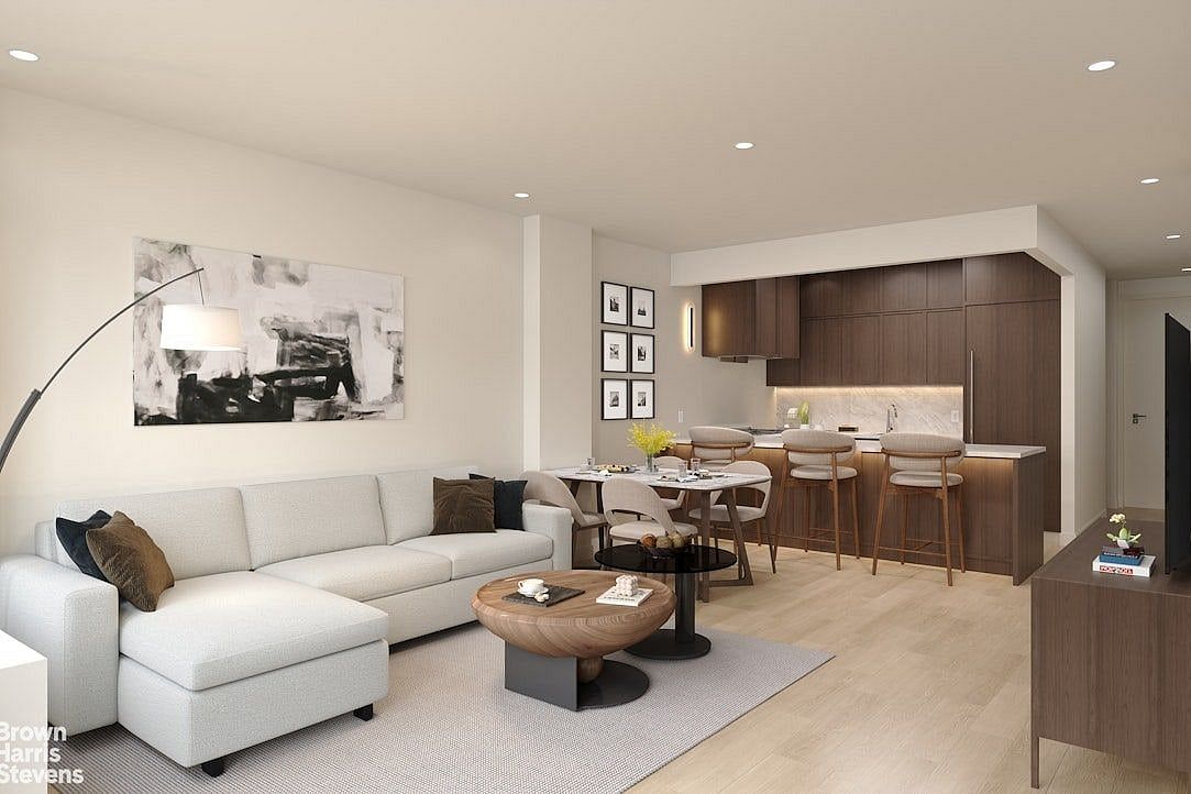 Introducing Residence 11B at 189 Bridge Street, a collection of 104 residences nestled in Downtown Brooklyn. This thoughtfully designed two-bedroom, two-bathroom home offers a rare combination of spacious interiors and two private outdoor spaces with captivating views of the Manhattan Bridge. The open chef's kitchen is outfitted with stainless steel appliances-including a vented hood-paired with sleek glass, custom made cabinetry and ample storage for all your culinary needs. An energy-efficient, full-size washer and dryer complete the in-unit amenities for added convenience. Natural light floods the living spaces through oversized windows, which also provide sound insulation for peaceful, restful nights. The two private terraces provide a perfect space for morning coffee, evening cocktails, or simply soaking in the city skyline. 189 Bridge Street offers exceptional amenities including a 24-hour doorman, elevator, common outdoor spaces, on-site parking and private storage. Situated at the vibrant crossroads of DUMBO, Vinegar Hill, and Downtown Brooklyn, you are moments from Whole Foods, Trader Joe's, the Apple Store, and ten subway lines (A/C/F/R/Q/B/2/3/4/5) providing unparalleled access throughout the city.