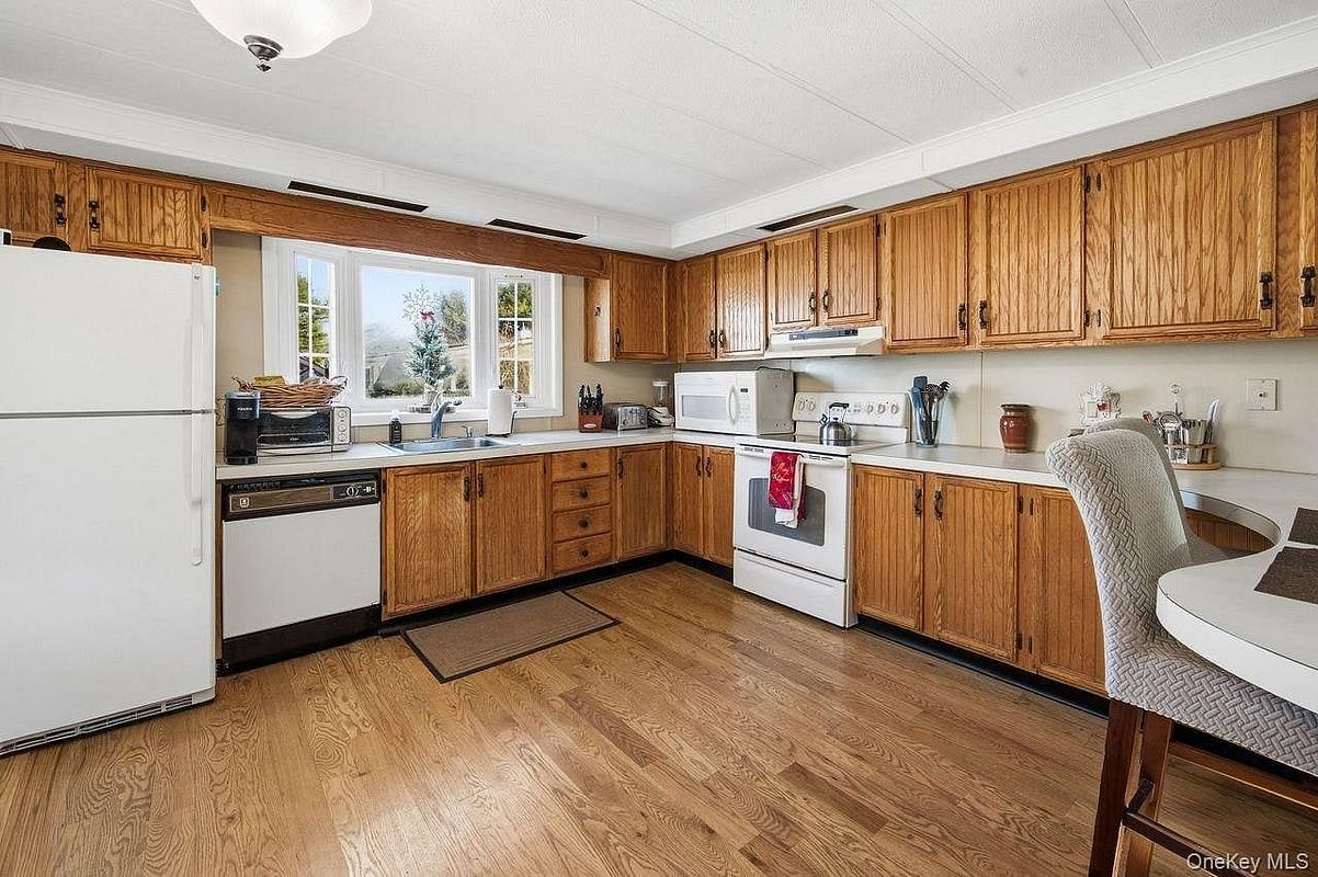 Welcome to this cozy 2-bedroom, 1.5-bath ranch-style home located in the desirable 55+ gated community of Greenwood Village. Featuring hardwood floors, newer windows and updated appliances, this home offers comfort and convenience throughout. The bright, open eat-in kitchen provides ample cabinet and counter space, while the adjoining living room creates a warm and inviting setting for relaxing or entertaining. An attached one-car garage and private driveway offer parking for two vehicles. Step outside to your fenced backyard sundeck, perfect for enjoying a morning coffee, grilling or unwinding with a good book. Beyond the home, Greenwood Village residents enjoy a vibrant lifestyle with exceptional amenities — including a clubhouse, pool, fitness center, tennis courts, walking trails and a full calendar of social events and activities. A convenient community bus service provides transportation to shopping, houses of worship and other scheduled destinations. Please note: All purchases are cash only, and community application approval is required.