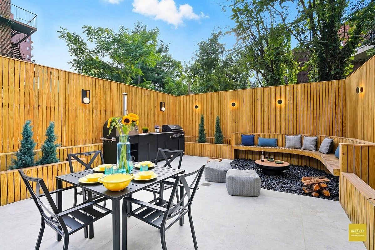 The living and dining areas flow seamlessly out to your own private backyard, designed for memorable moments. Imagine hosting pizza nights with the wood-fired oven, grilling under the summer sky, or cozying up around the fire pit on crisp evenings. This outdoor retreat is an extension of your home, perfect for everything from quiet coffee mornings to lively weekend get-togethers.