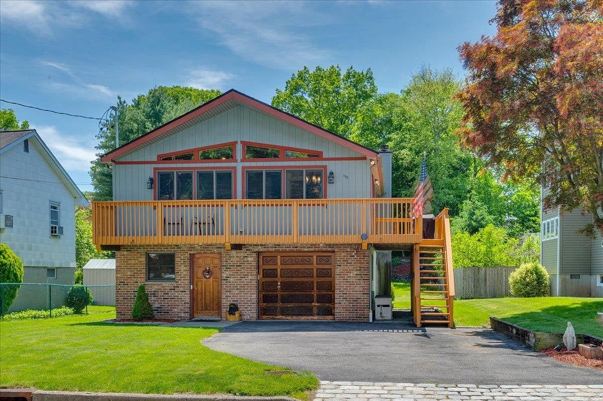 Just one look at this beautifully updated 3 bedroom, 2.5 bath bi-level ranch is all it will take to feel the warmth and comfort of home. Step inside to discover a welcoming lower level that combines comfort and functionality with a versatile space for a home office, powder room, laundry access, ample closets, and direct entry to the attached oversized garage. Additionally, this level boasts a generously sized family room with wood-burning fireplace, wet bar, and built in shelving - perfect for relaxing or entertaining guests. The sliders open to a lush, level backyard creating a picturesque setting for outdoor gatherings and summer fun. Ascending via a custom-built cedar staircase with decorative railing, you'll reach the main level adorned with beautiful hardwood flooring throughout. The open concept layout seamlessly combines the living room and dining area, highlighted by soaring wood beamed ceilings and a wall of windows that floods the space with natural light. The gourmet kitchen features granite counters, stainless steel appliances, and abundant cabinetry creating an ideal space for culinary creations. A side door off the kitchen opens to a wrap around deck perfect for outdoor dining. To complete this level are the primary bedroom with en-suite bathroom, two additional spacious bedrooms and a full hall bath. Additional features include central air, Navien tankless combi-boiler (2022), ADT security system, plus front and backyard sprinklers. Enjoy a short stroll to village recreation with pool, tennis, playground & park and just minutes to Metro North. This home truly has it all - a perfect place to create cherished lifelong memories!