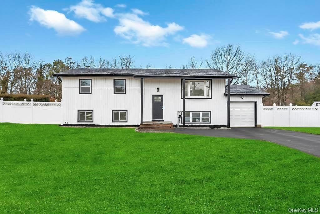 Welcome to this spacious 5-bedroom, 3-bath raised ranch located in Wheatley Heights within the highly desirable Half Hollow Hills School District. The upper-level features 3 bedrooms and 2 full baths, including a primary ensuite, along with a modern eat in kitchen, formal dining room, and a bright living room with high hats and hardwood floors throughout. The home also boasts a new roof and new siding. The lower level with outside entrance offers 2 additional bedrooms, 1 full bath, and an open living area, making it ideal for extended family or a potential mother-daughter setup with proper permits. With a well-designed layout and move-in ready condition, this home presents a fantastic opportunity.