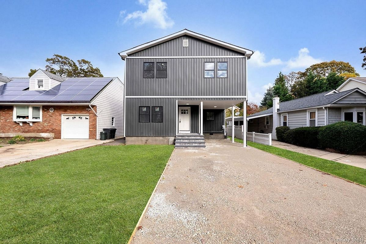 Fully renovated 6-bed, 3-bath home in the heart of Merrick! Brand new inside and out. Premium sidings, black windows, new boiler & mechanical. Features a stunning two-tone kitchen with quartz counters, shaker cabinets & stainless appliances, luxury vinyl floors, and designer bathrooms with modern finishes. Huge primary suite with lounge area & custom walk-in shower. Two bedrooms on main level ideal for guests or extended family. Fenced yard, central air, energy-efficient lighting, and prime location near LIRR, Sunrise Hwy, schools & parks. Literally, they are all less than a mile away. Truly the best priced, move in ready home in or around Merrick! Put this on your MUST SEE LIST!