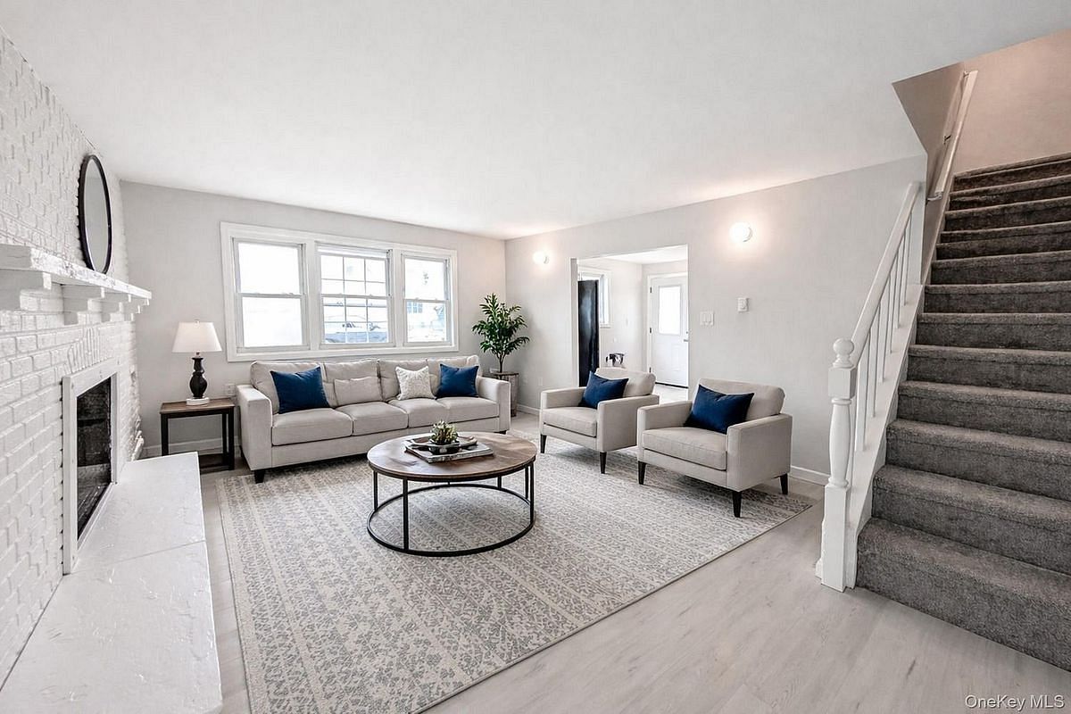 Welcome to 1932 Joshuas Path in Central Islip! This spacious and beautifully updated 5-bedroom, 2-bath Expanded Cape sits on a large, open property and offers incredible space, comfort, and potential. With a freshly updated interior, oversized property, and a 1.5-car detached garage, this home delivers exceptional value in a convenient location. Step inside to a bright and modern living room featuring new flooring, fresh paint, and a charming full-length white brick accent wall with a built-in fireplace feature. The brand-new eat-in kitchen is a true highlight—complete with white shaker cabinets, quartz countertops, new appliances, and plenty of room for dining. This home offers five generously sized bedrooms, including multiple main-level options and three large second-floor rooms with updated carpeting. Both full bathrooms provide comfort and convenience for a large household. The basement offers tremendous potential for storage or future finishing. With interior access and plenty of space, it's a perfect opportunity to expand your living possibilities. Outside, the property is open, level, and beautifully maintained—with a long driveway leading to the detached 1.5-car garage, offering ample parking and storage. Whether creating a backyard retreat, adding outdoor entertaining space, or simply enjoying the privacy, this yard is a true asset. With taxes under $10k with the STAR credit, this home is one you do not want to miss!
