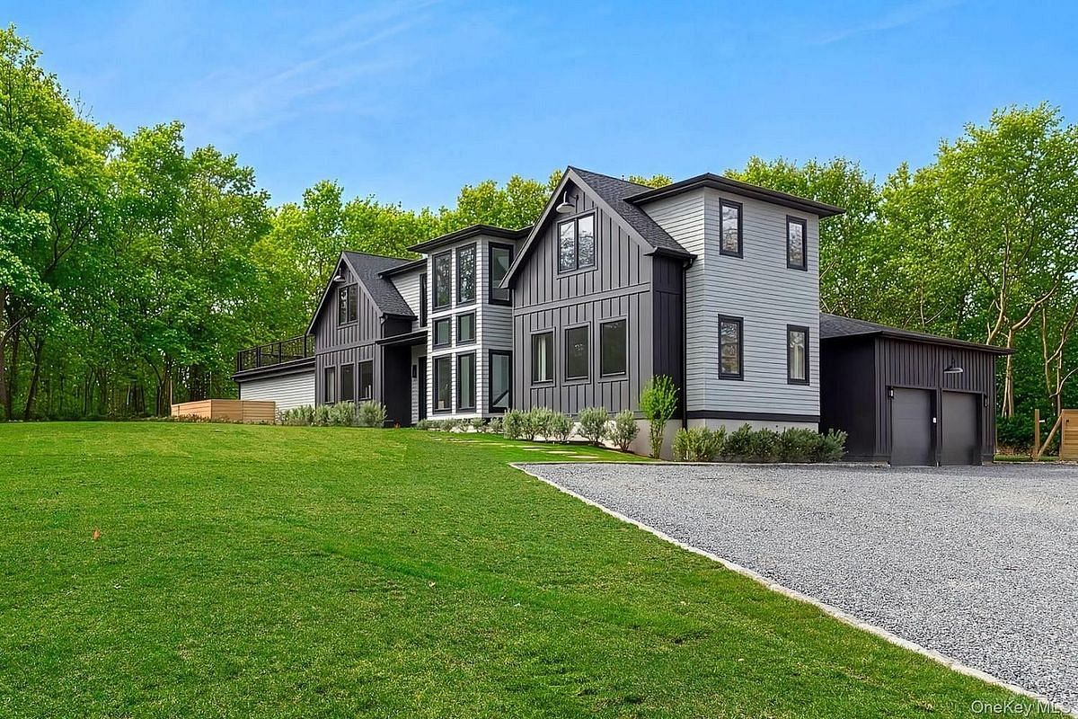 Brand new from an acclaimed Hamptons builder, 2 Grove Avenue in Southampton delivers a picture-perfect vision of coastal contemporary luxury living. Clad in cedar-shake siding and sited on a bright .82 acre parcel with wide open skies above and moments from Little Peconic Bay. Interiors are bright and luxurious, with instantly apparent build quality and attention to detail. Light beams through the grand double-height entry foyer, highlighting the contemporary open-concept floor plan. On one side, the dedicated dining room is perfect for formal dining and leads to the covered side patio for dining al fresco and, opposite, a first-floor junior primary suite. At the heart of the home is a large great room, anchored by modern fireplace and including multiple sliding glass doors that prioritize easy indoor-outdoor living. Ready for entertaining and relaxing, the great room encompasses an eat-in kitchen with premium appliances, breakfast area, sitting area, and living room. The first floor is completed by a laundry room, coat closet, powder room, mudroom, and attached 2-car garage. The park-like grounds are an enviable escape in the Hamptons with gorgeously manicured grounds, large 40'x'20' gunite pool, outdoor shower, and an expansive patio with covered and uncovered space for lounging in the sun and dining al fresco. Upstairs, find 5 ensuite bedrooms, each well-sized and ready to accommodate loved ones and guests, along with convenient laundry room. The primary suite is its own sanctuary with a large 16'x18' patio overlooking the pool and ground, along with a boutique-style walk-in closet and luxe bath with a glass-lined shower, free-standing soaking tub, water closet, and 2 separate vanities. The lower level is ready for year-round luxury living with a large recreation area, home gym, and ensuite bathroom. Additionally, A convenient staircase allows access to the lower level directly from the pool area. The 3 levels offer 6,715 sq ft of living space. Located moments from the water in a secluded and peaceful area close to marinas, golf, and elevated living in nearby Hamptons Villages.