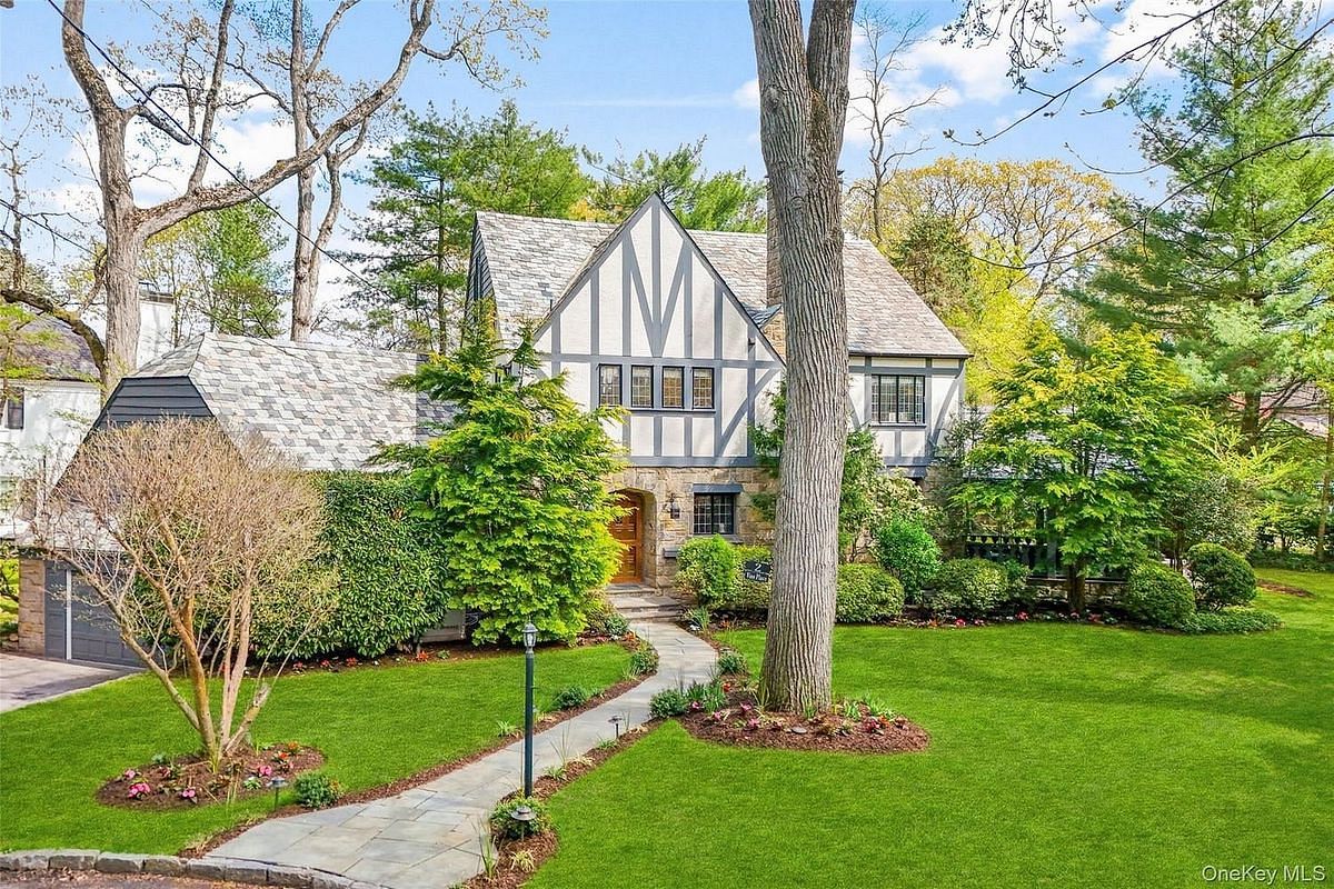 A 1930s Tudor, thoughtfully renovated with a modern, bright, and fresh aesthetic, this sophisticated home is tucked on a quiet cul-de-sac just moments from Murray Avenue Elementary, the village, and the train. Set on .36 acres of beautifully landscaped property, it offers a rare balance of convenience, tranquility and effortless everyday living. A gracious entry hall introduces interiors where classic architectural elements are paired with clean, modern updates. The living room, centered around a stone fireplace, opens to a screened-in porch overlooking the private backyard, creating an effortless extension of the home's living space. Arched doorways and a striking barrel vault ceiling in the dining room add character and dimension, while the paneled library serves as a quiet, refined space with French doors leading outdoors. The kitchen is both dramatic and inviting, with vaulted ceilings, exposed beams, top-of-the-line appliances, a central island, and a cozy breakfast nook. A nearby family room with custom built-ins and a full bath provides flexibility as a private office or additional living space. A powder room and coat closet complete the first floor. Upstairs, the primary suite is well-scaled, complete with a dressing room and a spacious, spa-like bath with a glass-enclosed shower, mosaic tile details, and a soaking tub. Two additional bedrooms and a hall bath complete this level. The third floor features two expansive bedrooms filled with natural light, with treetop views, vaulted ceilings, and an additional bath. The finished lower level (additional 360 square feet) includes an original recreation room with a fireplace, providing a comfortable and versatile space for gathering and recreation, along with generous storage. The private backyard is thoughtfully designed with multiple areas for entertaining and everyday enjoyment, extending the living experience beyond the home. A full-house generator, refinished hardwood floors, original Tudor details, zoned heating and cooling, a security system, sprinkler system, and professionally designed landscaping complete the home. 2 Vine Place offers a sense of serenity while remaining close to the bustle of everyday life, an ideal blend of lifestyle and location.