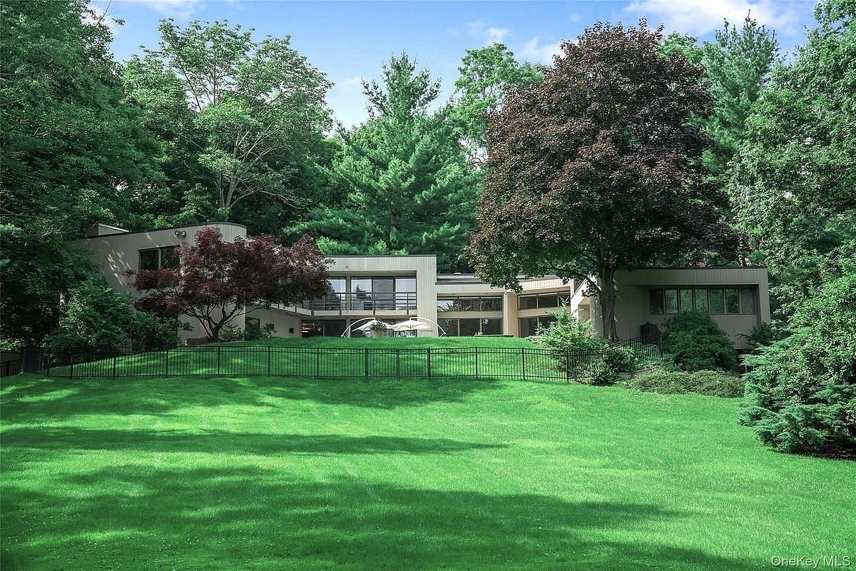 Enveloped by natural beauty and set on 2.33 lushly landscaped acres, this exceptional modern residence offers a rare blend of serenity, and architectural brilliance. Perfectly sited on Davis Pond, the home embraces breathtaking water views from every angle, creating a tranquil, organic environment. Enjoy the heated pool, expansive sun decks, outdoor kitchen, & screened gazebo all designed to enhance relaxation, and connection to nature. Inside, the residence reveals a stunning fusion of modernism and warmth. Curvilinear walls, dramatic lines, and open, airy spaces invite sunlight to flood each room. Nearly every space opens seamlessly to the pool and deck areas, blurring the boundaries between indoor living and the natural surroundings. The main level boasts a large primary suite with 4 additional bedrooms on the second level. Fully equipped gym and full house generator. Located on a quiet cul-de-sac in one of Armonk's premier estate neighborhoods and served by the award-winning Byram Hills School District, this residence is the epitome of sophisticated modern living in a private, picturesque setting.