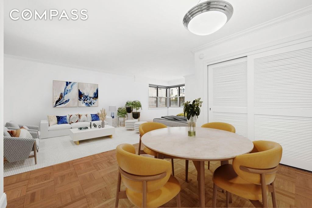 This super sunny, freshly painted and renovated large studio (feels like a one bedroom) has lovely views of the stunning Harvey Wiley Corbett designed low rise buildings which date back to 1834-1836.