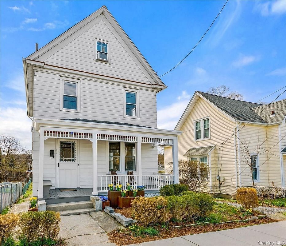 Charming Village Colonial dating to 1875, just half a block from Dobbs Ferry Middle and High Schools and all things Dobbs Ferry. The classic side-hall layout begins with a welcoming front porch that leads into the foyer and a sunny west-facing sitting room, flowing naturally into the dining room, large eat-in kitchen, full hall bath, and enclosed mudroom — then out to the patio and down to the backyard and detached garage. Upstairs, there are three bedrooms, a hall full bath, and walk-up access to a heated, finished attic with two rooms and generous storage. The unfinished walk-out basement offers high ceilings and plenty of options. Just a few blocks from the new Village Pool, the Historic Old Croton Aqueduct trails, and all the playgournds, shops, and restaurants that the Village of Dobbs Ferry has to offer. Truly walkable homes like this rarely come to market — reach out today to schedule your showing.