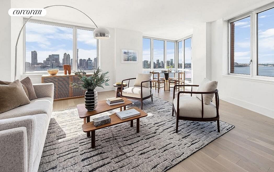 Residence 25B is a gracious, 1,662 sq. ft. three-bedroom three-bath home designed by Pelli Clarke Pelli to meet the highest level of green building certification. Upon entering this north- and west-facing corner residence, experience an abundance of natural light and direct Hudson River views through floor-to-ceiling windows. All three bedrooms enjoy water views and boast ample closet space. There is also a large closet in the foyer for extra storage. The kitchen features a suite of stainless steel, Energy Star appliances and a granite breakfast bar that is perfect for entertaining. A Bosch washer and dryer set completes the appliance package and a four-pipe multi-zone heating and cooling system allows for whisper quiet comfort and energy savings year-round.