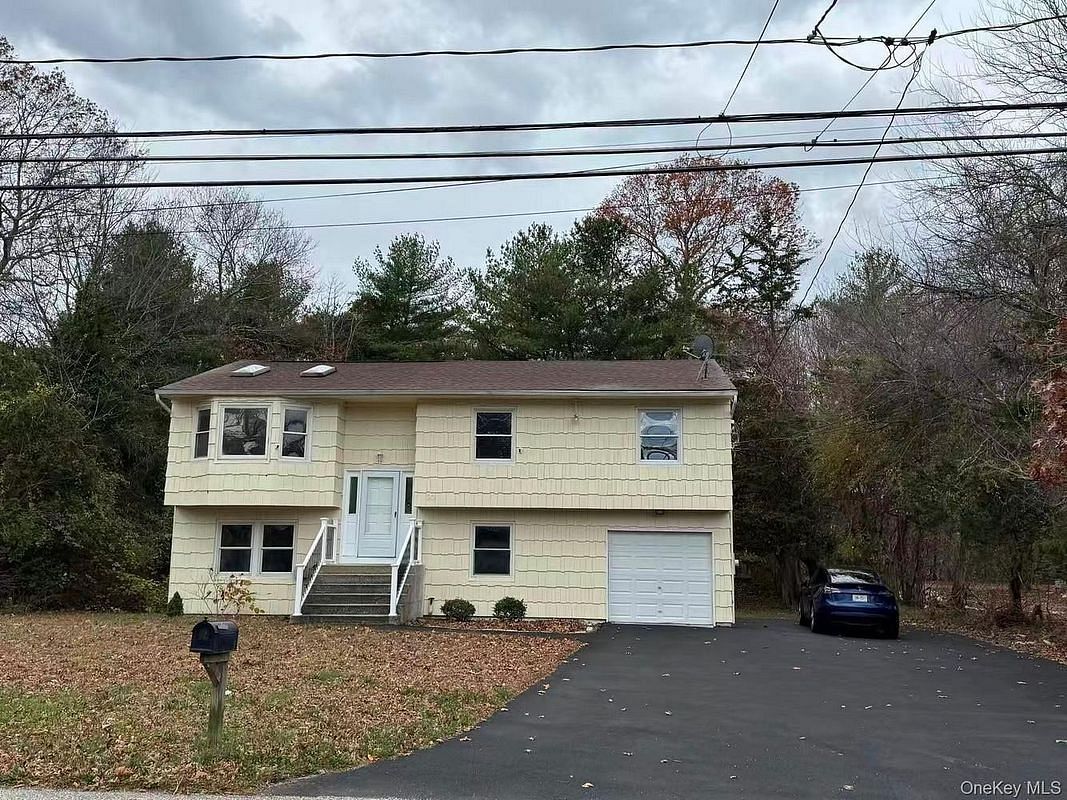 Spacious Hi-Ranch home situated on a quiet residential street in Coram, offering exceptional space and privacy on a generous 1 acre lot. Built in 1983 and well maintained, this residence provides approximately 2,500 sq ft of living area with a flexible layout that includes 5 bedrooms and 2 full bathrooms. The upper level features bright living and dining areas with an open feel, while the lower level offers additional rooms ideal for extended living, home office, or recreation. An attached garage adds convenience, and the expansive backyard offers endless outdoor possibilities. Located in the desirable Longwood School District and close to major roadways, shopping, and everyday conveniences. A rare opportunity to enjoy substantial indoor and outdoor space in a peaceful suburban setting.