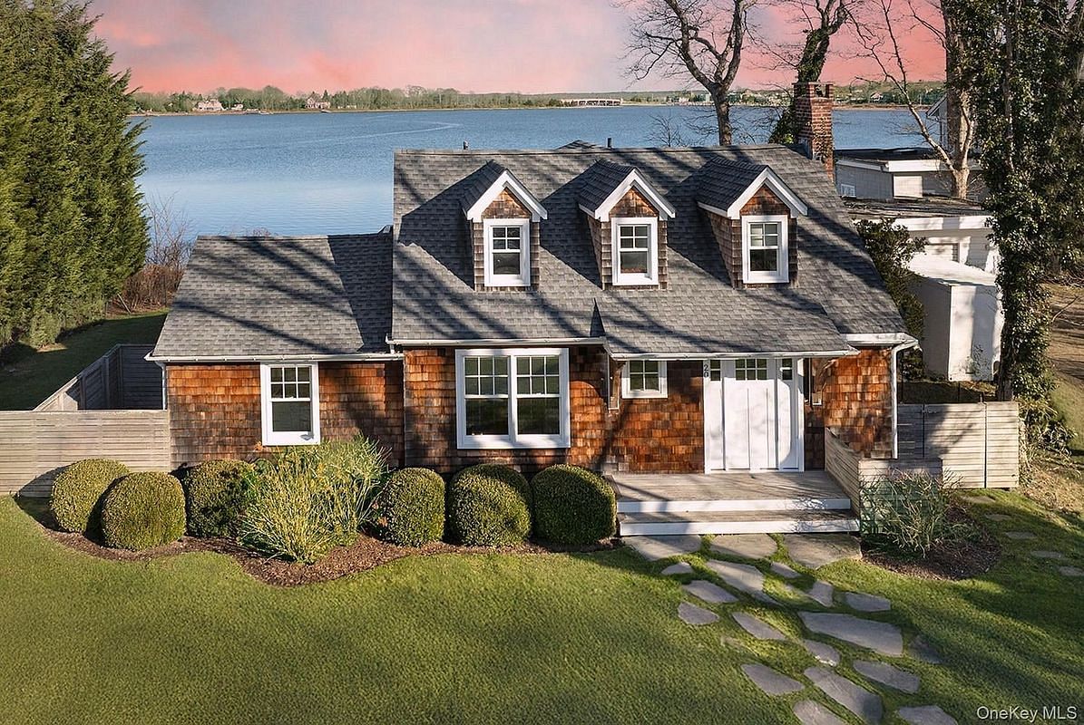 An Iconic Sag Harbor view set along the coveted shoreline of Sag Harbor Cove. This chic waterfront retreat offers a rare blend of privacy, vast harbor views across to Sag Harbor village and direct open water access to Sag Harbor Bay. Within this quiet, exclusive enclave of Bay Point located on one of the most desirable streets, this property offers 100 feet of bulk headed beachfront and a private dock. The experience of tranquil water vistas and a sparkling waterside pool and jacuzzi spa await your arrival. This well-appointed property with distant water views through the wide expanse of glass doors is strikingly breathtaking. A modern stylish design and decor captivate coastal living at its very best. Thoughtfully reimagined and renovated to the studs in 2018, this immaculate residence holds 4 bedrooms and 3 baths spanning approximately 1,850 square feet all across two architecturally designed levels. An additional lower level of 640 square feet is ready for an innovative design addition. With spectacular water views from most all rooms, a bright open ~ concept floor plan flows seamlessly from the living room to the kitchen and dining area, ideal for relaxed nautical living and entertaining. White oak hardwood floors carefully crafted with the vision of yesteryear, a gourmet chef's kitchen with gorgeous white quartz counters and center island all accented with Caribbean blue sea glass tiles blending with the glistening Zen water views. Additionally, custom built in cabinetry and Sub Zero and Wolf appliances complete this special living area. A cozy fireplace hearth and game area blend well and lends warmth and refinement throughout this home. Tucked away is a first level primary en-suite with water views featuring built in closets and a quality spa like bath accented with gorgeous porcelain and custom tiles. An additional guest bedroom and full bath complete the first level. The second level holds two additional guest bedrooms, a full luxurious bath with expansive water views offering flexible accommodations. With this design of multiple rooms capturing serene views of Sag Harbor Cove, you maintain a divine connection to the surrounding water and beyond. Architectural plans for expanding to a 3000 plus square foot property are included in this wonderful property offering. With indoor and outdoor living flowing so naturally, you will find this waterfront private oasis is perfectly suited to the Sag Harbor lifestyle. After swimming in your waterside pool and spa, step into your boat just steps from the house and set out for a morning cruise or an easy ride into the village on the water for lunch, dinner, or sunset cocktails. Long Beach, Foster Memorial Beach, and the cultural historic heart of Sag Harbor Village are all just minutes away. Equally compelling as a year-round residence or an elegant weekend escape, this waterfront offering delivers timeless Hamptons appeal, modern comfort, and an exceptional setting on Sag Harbor cove, where privacy, boating, and village living converge.