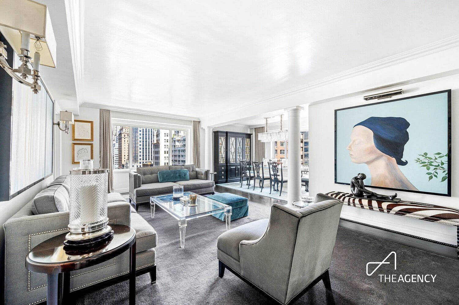 Upon entering, you're greeted by a gracious entry foyer adorned with cove lighting and a silver leaf ceiling, leading seamlessly into the gallery and oversized living room that boasts stunning north and west-facing city views. The layout is ideal for entertaining, featuring a corner dining room that captures extraordinary northern views up Third Avenue.
