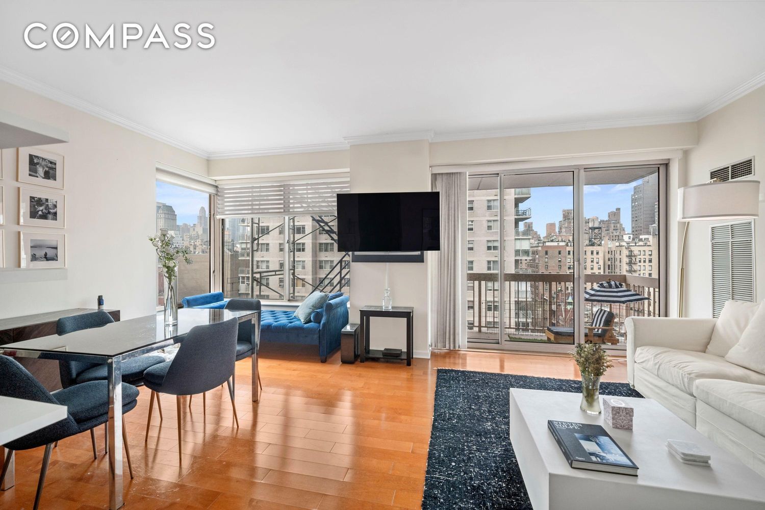 The primary bedroom boasts ample closet space and a luxuriously appointed marble bathroom. Conveniently situated near Central Park, numerous cultural attractions, and upscale shopping and dining destinations, this residence offers a desirable location.
