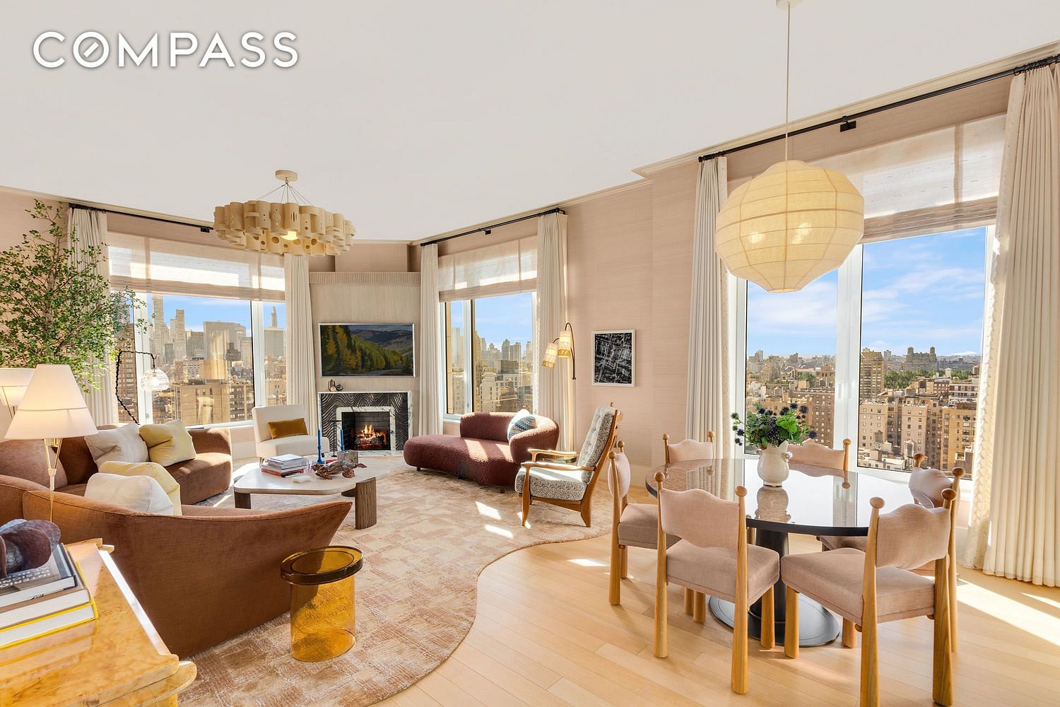 A gracious 44-foot gallery entrance sets the stage for the home's thoughtful layout and entertaining flow. At its heart is the corner living and dining room, nearly 29 feet in length and wrapped in oversized casement windows. This space captures open southern views toward the Empire State Building and Western views over Central Park tree tops in the distance. A recently added custom fireplace serves as an elegant focal point, especially while enjoying daily sunsets to the West.