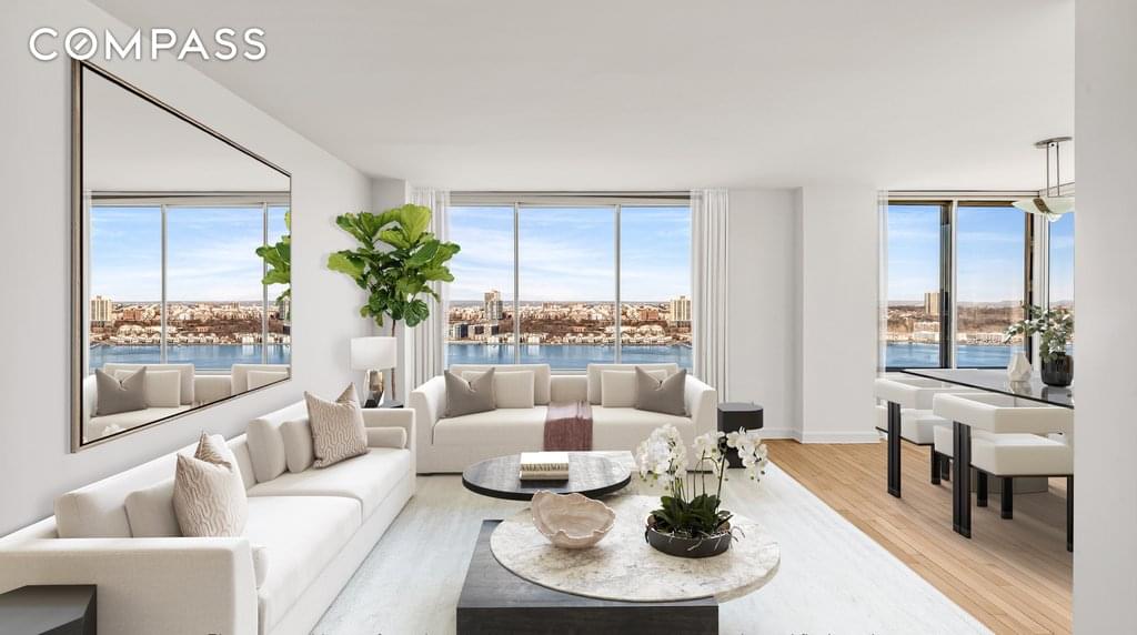Experience the luxury of a renovated 2 bed, 2.5 bathroom apartment in a fully amenitized building on the Upper West Side, where every window offers stunning waterfront views.