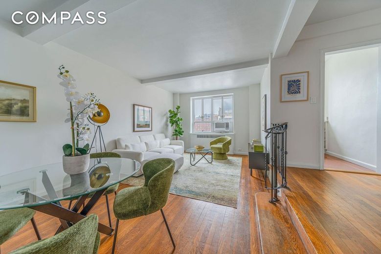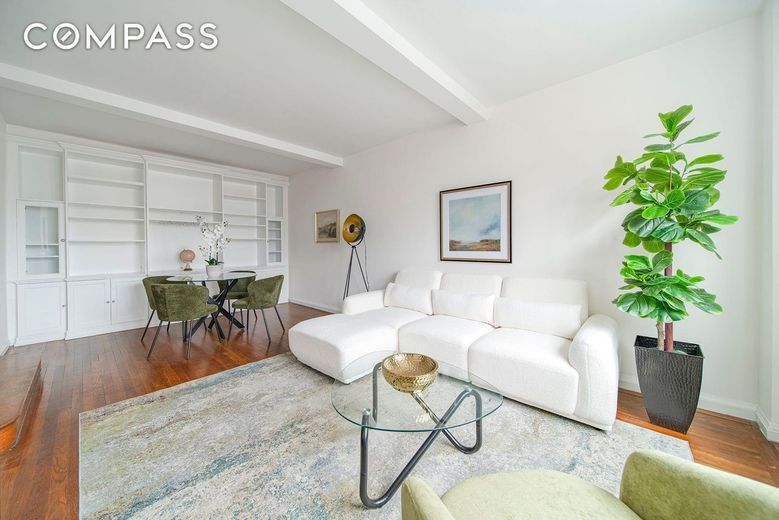 With windows in every room, this is a bright and cheerful corner apartment with an abundance of natural light. A formal entry foyer creates a warm welcome to this wonderful home. The classic pre-war sunken living and dining room is gracious in scale, has mahogany inlaid hardwood floors, and an oversized window facing over 20th Street. The generously proportioned bedroom boasts a corner window with amazing north and east exposures, showcasing views of 20th Street and 7th Avenue. The marble-tiled windowed bathroom features a glass encased shower and additional closet. A multi-purpose walk-in closet is located just next to the bedroom, perfect for any extra storage you may need.
