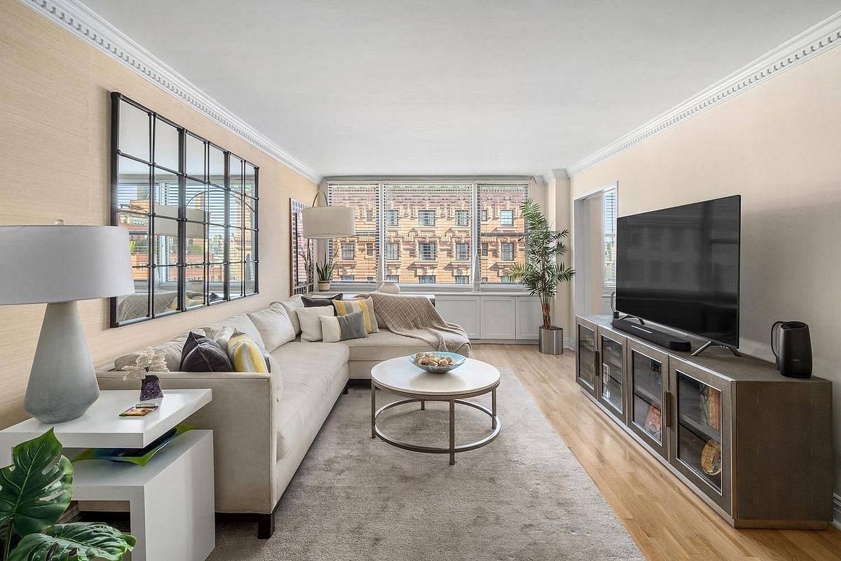 This high-floor, beautifully renovated and converted 2-bedroom, 1-bathroom home with open North City views resides in The Gloucester, a full-service luxury cooperative located in the heart of the Upper West Side. Features of this wonderful apartment include an oversized living room with side Hudson River views, dental crown molding, a large picture window, a dedicated dining area, and a fully renovated kitchen with Brookhaven white high gloss cabinetry, Subzero & Bosch appliances, subway-patterned glass backsplash, Caesarstone countertops, and an opening in the wall to the second bedroom for additional light. Other features include a marble bathroom with a glass enclosed shower/tub, marble vanity, and a primary bedroom with crown moldings, a custom double-sized closet, and a separate shoe closet! City Quiet windows throughout the apartment, solid oak flooring with baseboard molding, custom crown moldings, 3 paneled doors, hardware and light fixtures, thru-wall AC's with custom enclosures & storage, 6 custom fitted closets (1 is walk-in and 1 is double-sized), and window treatments in all rooms complete this perfect home. BLD: 24-hour doorman, resident superintendent, 24-hour porter, renovated lobby, hallways and elevators, excellent financial condition, laundry room, planted/lit roof deck with Hudson River views, attended garage, pets, and pied-a-terre welcome. Best UWS location, near Central and Riverside Parks, multiple grocery options (Zabars, Citarella, Fairway, and Trader Joe's), cultural offerings (Museum of Natural History, Children's Museum of Manhattan, JCC), numerous restaurants, adjacent Citi Bikes, multiple bus and train options, and only one block from the 1 train.