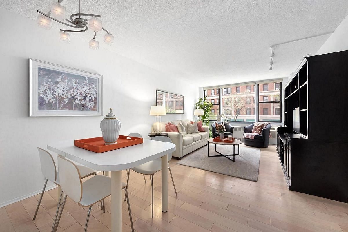 This fully renovated, bright all day and sunny one bedroom / one bathroom home resides at The Gloucester, a full service luxury cooperative located in the heart of the Upper West Side. Features of this wonderful home include new wood flooring throughout, a renovated open kitchen with wood cabinetry, GE appliances, & a marble countertop pass-thru with glass display cabinets above, a spacious living room w/dedicated dining area, and a renovated bathroom with a glass enclosed tub, white tiling, and a marble topped vanity. The large primary bedroom offers space for a home office area, in addition to two custom fitted closets. Picture windows & custom window treatment in LR & BR, five custom fitted closets (2 double deep and 1 WIC) & thru-wall AC, complete this move-in-ready home! The building offers a 24 hour doorman, resident superintendent, porter, renovated lobby, hallways and elevators, strong financial condition, laundry room, planted/lit roof deck with Hudson River views, 24 hour attended garage, pets and pied-a-terre welcome. Best UWS location, near Central and Riverside Parks, multiple grocery options (Zabars, Citarella, Fairway, and Trader Joe's), cultural offerings (Museum of Natural History, Children's Museum of Manhattan, JCC) numerous restaurants with adjacent Citi Bikes, and only one block from the 1 train.