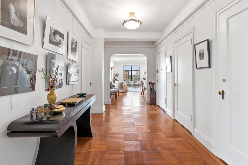 The residence is entered through a gracious central foyer that separates the living area from the massive bedrooms and their ensuite, restored Art-Deco baths. The living room and dining area are bathed with south and west light and there are gorgeous hardwood floors and beamed ceilings throughout. There are enough oversized closets (6, to be exact) to house everything from your first prom dress or tux to the bounty from the last going-out-of-business sale.