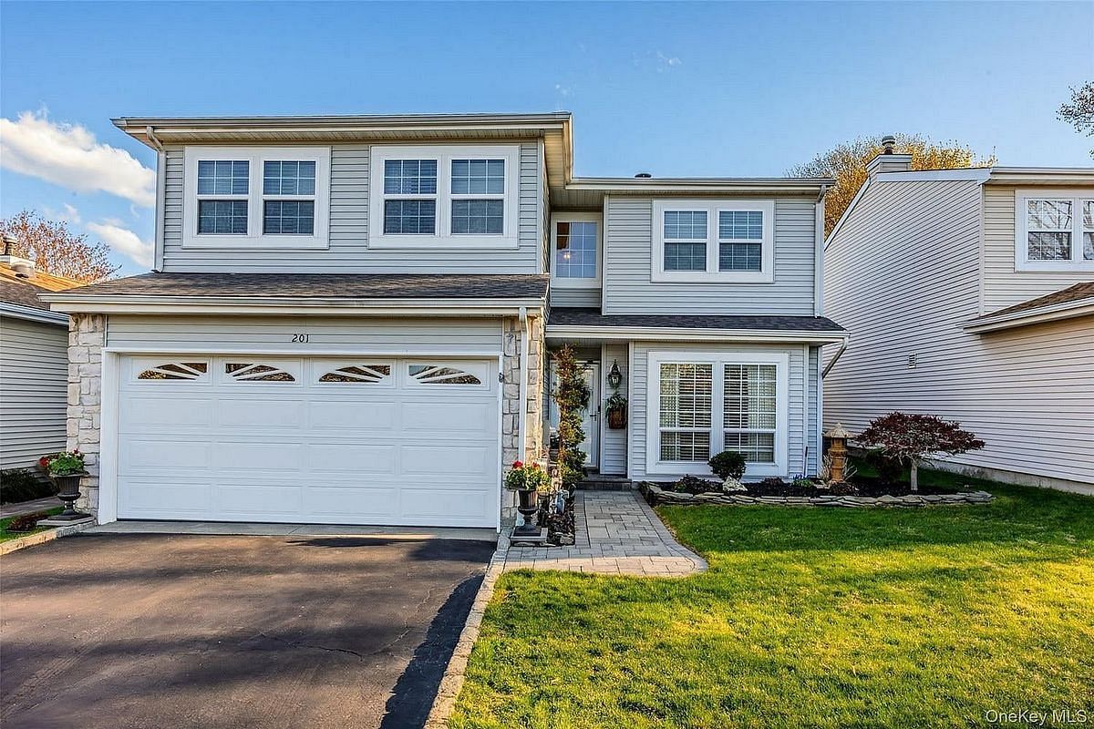 Waterfront setting and spacious design come together at 201 Colony Drive, a well-maintained condominium in Holbrook offering comfort, style, and a wide range of amenities. This residence features three oversized bedrooms, two full bathrooms, and a powder room, providing a flexible and functional layout. The kitchen is appointed with premium Italian appliances and quality finishes, creating a refined space for everyday living. Hardwood floors extend throughout the home, complementing the main living area, which includes a fireplace and detailed moldings that add warmth with architectural character. A private patio overlooking the water offers a peaceful outdoor setting you can enjoy with your morning coffee or favorite beverage. Residents have access to multiple community amenities, including three pools, an updated gym, ballroom, playground, basketball courts, tennis courts, and pickleball courts. The waterfront location adds to the overall setting. Conveniently located near shopping, dining, the Ronkonkoma train station, and Long Island MacArthur Airport, this home offers accessibility along with a well-appointed residential environment.