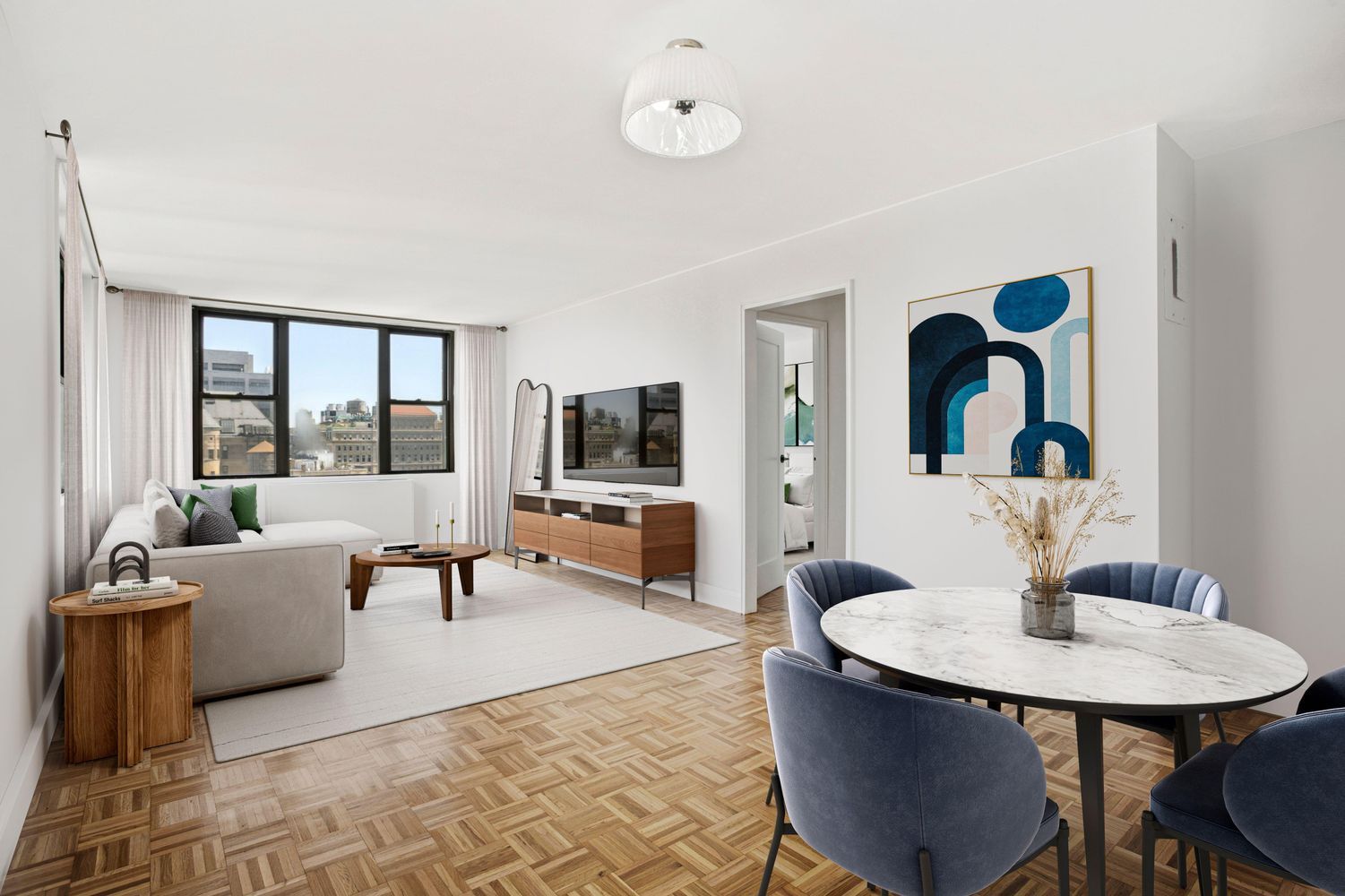 Sponsor Sale - No Board Approval! This newly updated spacious and inviting one-bedroom, one-bath home at Park Towers offers a corner exposure with North and Eastern stunning open city views as well as an elegant layout designed for both comfort and style. A welcoming foyer leads to a large open living and dining area, ideal for everyday living and entertaining. Features include beautiful parquet floors, updated stainless steel appliances with a French door refrigerator and dishwasher, and excellent closet space. The bathroom is finished with marbled walls and flooring, adding a touch of classic sophistication.