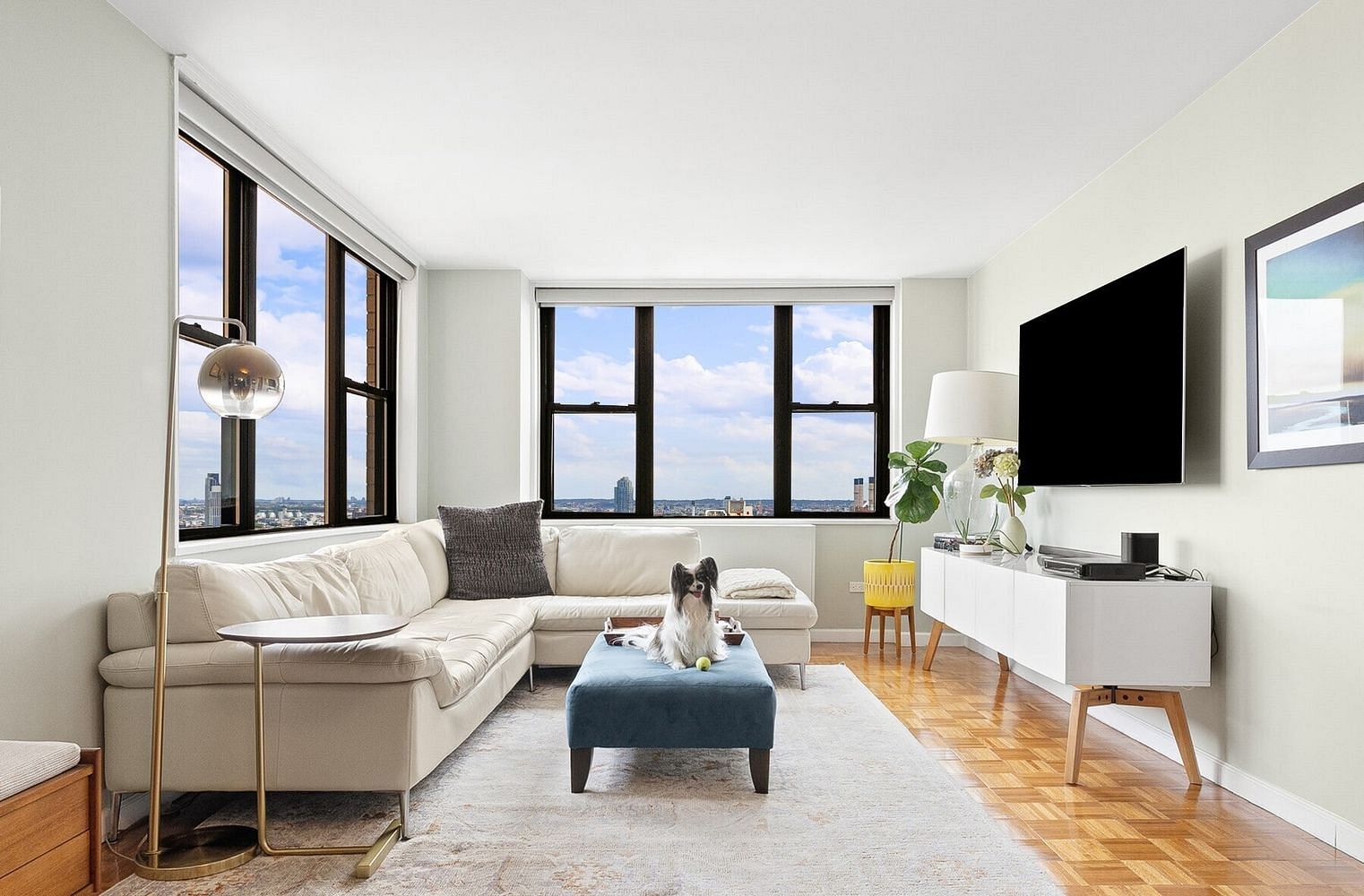 On the 28th floor, right in the heart of Gramercy, this place isn't just where you'll live, it's where you'll take in magnificent views of Manhattan, including bridges, river views, the sky, and the City. With tons of natural light pouring in, this space offers a perfect blend of city living and serene comfort. As you enter, youll find walls ideal for artwork and ample closets leading to an open floor plan that hosts a spacious living area with corner windowsready for whatever you need: a dining spot, a home office, or a cozy space to kick back and relax. The bedroom is oversized with ample closet space. Enjoy the landscaped and cozy roof deck on the 32nd floor, offering jaw-dropping views of New York's most iconic buildings, including the Empire State Building, Chrysler Building, and One Vanderbilt. The building also features a gym, a relaxing outdoor plaza, a parking garage, and a laundry room. Plus, Union Square is just a few blocks away.
