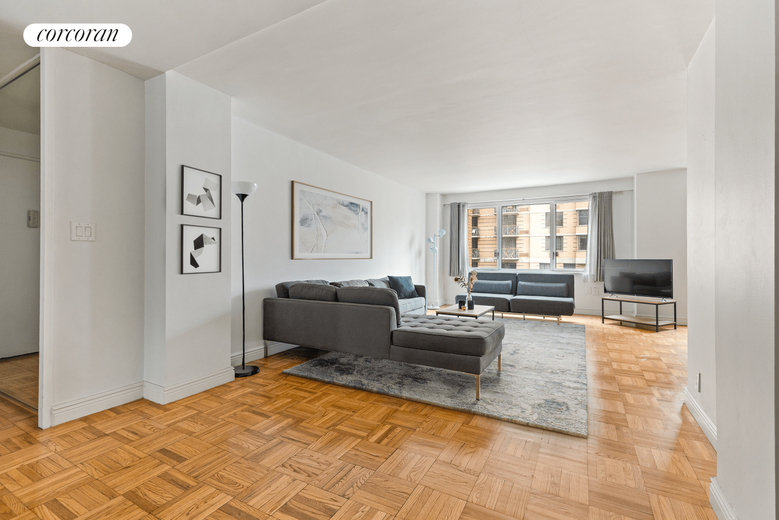 Recently renovated, the kitchen and bathrooms showcase modern finishes, creating a seamless blend of contemporary style and functionality. The apartment features brand-new, energy-efficient windows that are double-pane and soundproof. Apt #9H has an HVAC heating and cooling system, keeping the temperature just as you like it all year long. The building itself is a full-service haven, meticulously maintained with an updated lobby and elevators that enhance both aesthetic appeal and convenience.