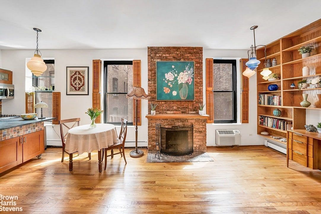 Welcome to apartment 4R, a beautifully renovated one bedroom loaded with pre-war charm. With soaring 9'2" ceilings and oak wood floors, the space feels open and airy. A wood burning fireplace provides a cozy focal point in the living room. Lovely brick walls in both the living room and bedroom, add character and warmth throughout.
