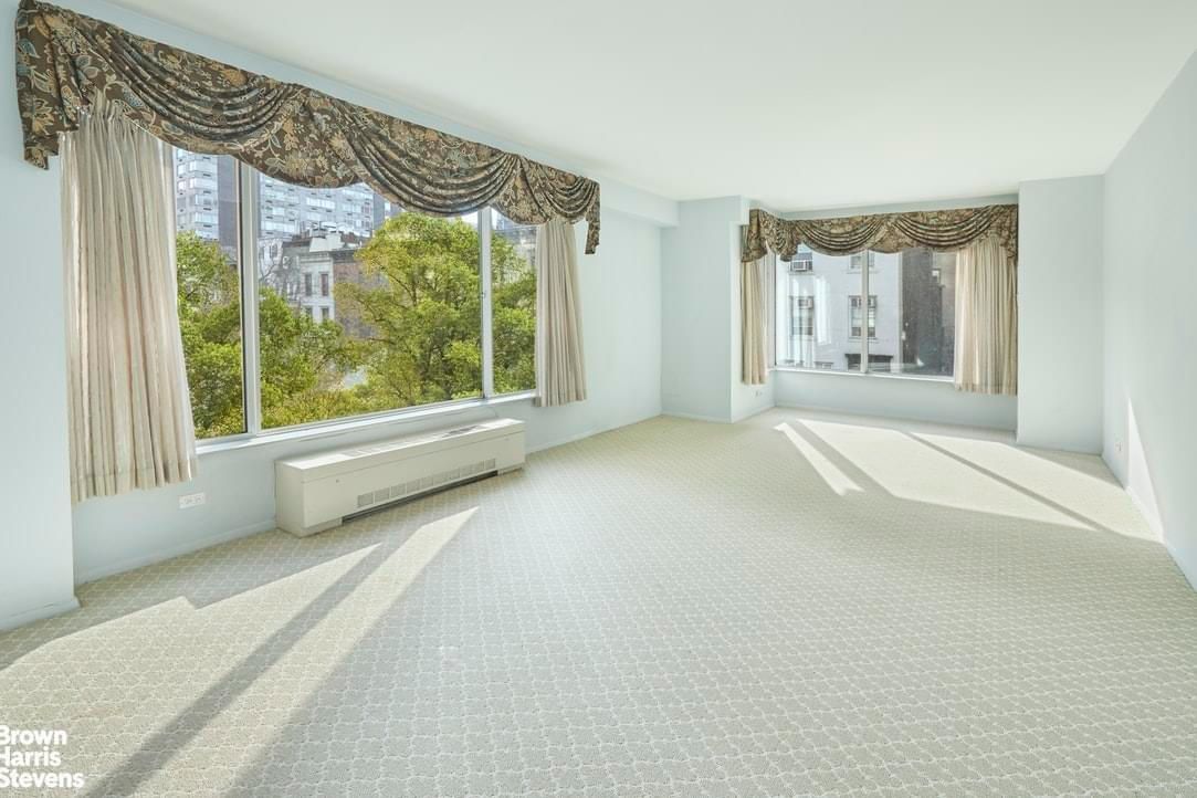 #T3F is a South and East-facing corner residence which benefits from incredible sunlight all day as well as treetop garden views. The apartment comprises a very large corner Living/Dining Room with renovated engineered wood plank flooring and attractive views on both sides through oversized expansive picture windows. The renovated chef's Kitchen includes a full suite stainless steel appliances, ample storage as well as a large picture window overlooking the garden. There is also a Washer/Dryer which vents out built in to the Pantry closet. Additionally the apartment features a Powder Room for guests.