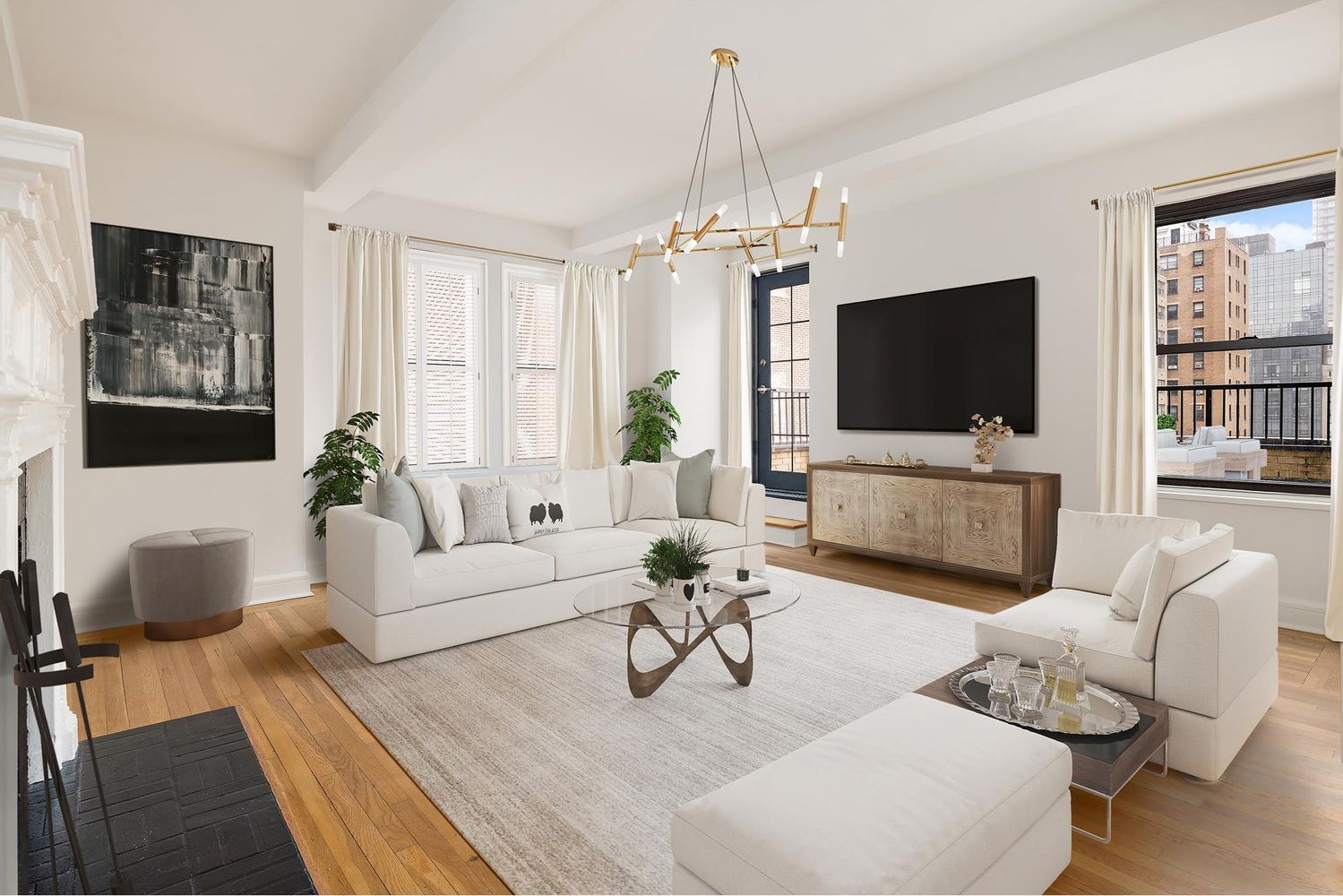 Newly renovated and never occupied; this rare & glamorous double terraced (one spectacularly huge and one small) 1BR/1Bath residence features open Easterly city views, windowed kitchen w/ top-of-the line appliances, washer/dryer, lovely prewar-inspired bathroom w/ walk-in shower, and charming details throughout including hardwood floors, beamed ceilings, WBFP, and closets galore.