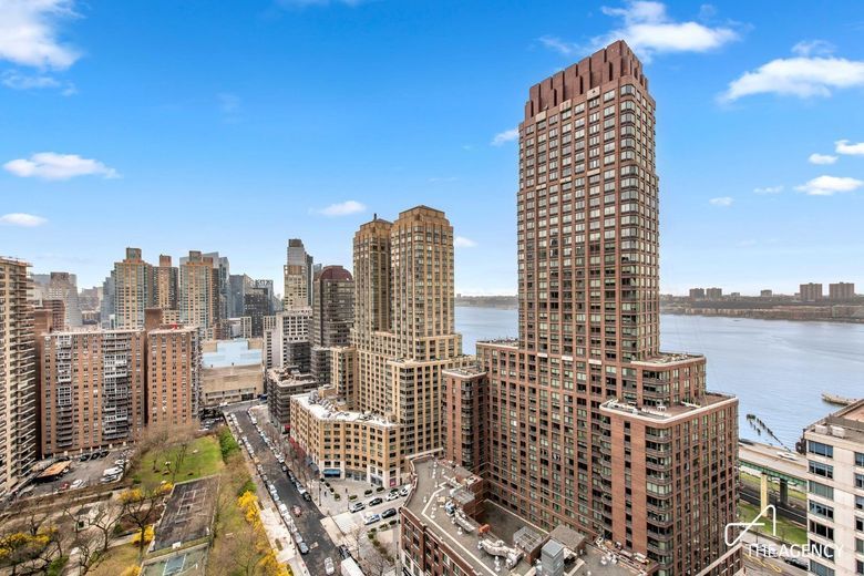 On a high floor with southern and western exposures, the iconic corner 2 BR apartment captures gorgeous Hudson River, park and City views, and is bathed in brilliant sunshine all day, and even more brilliant sunsets in the evening. Relaxing on the 26" terrace for your morning coffee or end of day cocktail or dinner is a delight. But it's once you get inside that your breath will be taken away. Nothing's been overlooked. The granite and stainless kitchen has been opened and expanded to add a seven foot wide ceiling height pantry, and boasts a 36" six burner Jenn-Air oven, a Bosch dishwasher and a stunning glass door 36" Sub Zero refrigerator. The master bath has also been expanded, and is accented with Toto fixtures and a lovely Duravit vanity. New wood plank floors run throughout, all of the closet doors and hardware have been replaced, and there are new radiator and air conditioning covers in each room. The closet space, which includes two huge walk-ins, is overly generous. And a washer/dryer could be allowed!
