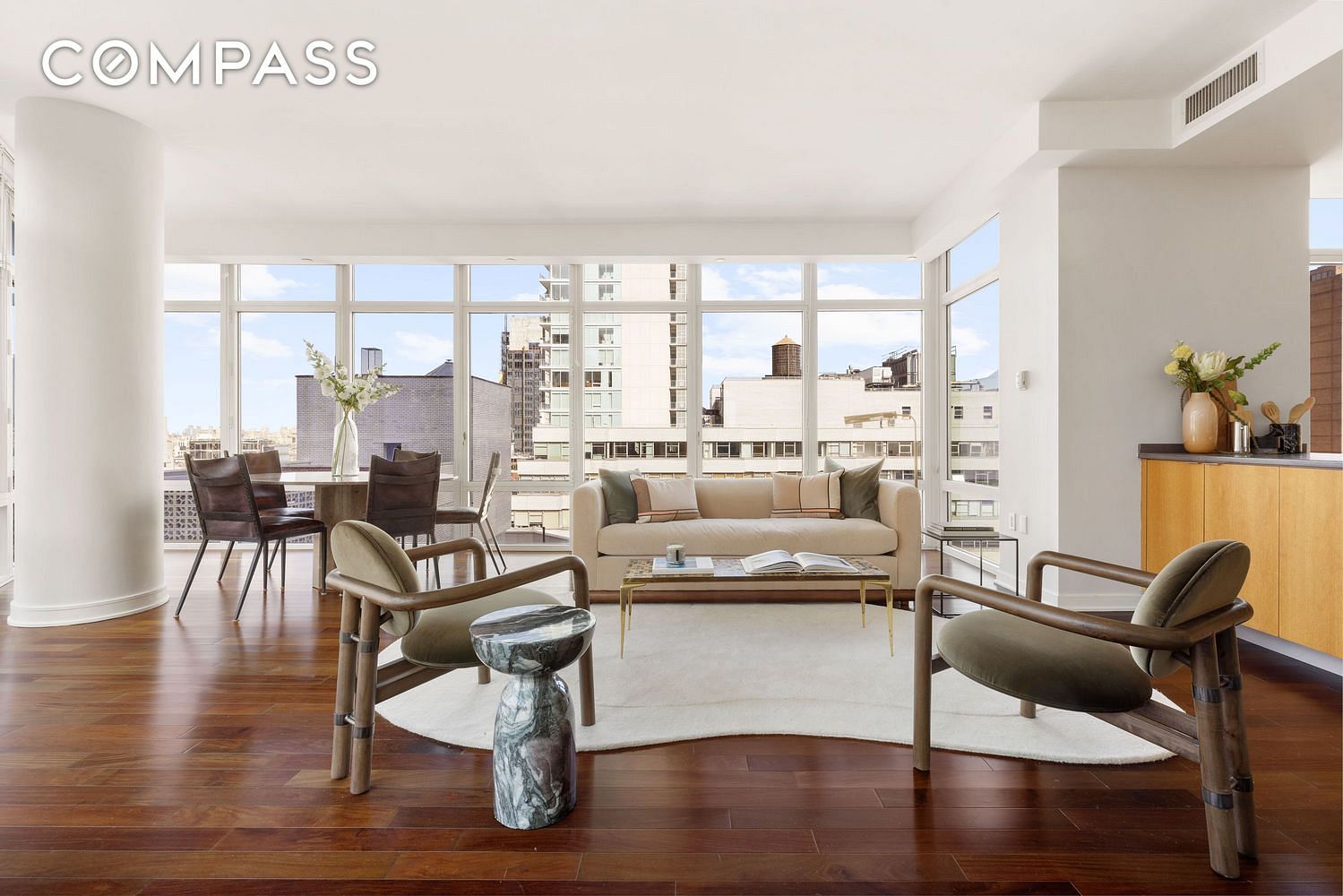 This luxurious, lightly used 3 bedroom and 3 bathroom high floor condo is available at Place 57, the exquisitely designed 36 story glass tower by famed architect Ismael Leyva. Impeccably maintained, this loft-like home with spectacular city views in every direction is perfect for living and entertaining. The apartment features high ceilings with floor to ceiling windows, wide plank Brazilian walnut floors, a gourmet open windowed kitchen with luxury appliances from Viking, and bathrooms by Waterworks. Tons of storage throughout the apartment, plus two private storage lockers that come with the unit. Built in 2005, 207 East 57th Street features a 24-hour doorman and concierge, newly equipped fitness center, residents lounge, courtyard garden, and childrens playroom. Conveniently located, transportation is 2 blocks away, Whole Foods is across the street, many outstanding restaurants nearby, Central Park and the best shopping can be found on Fifth Avenue, just a few blocks away.