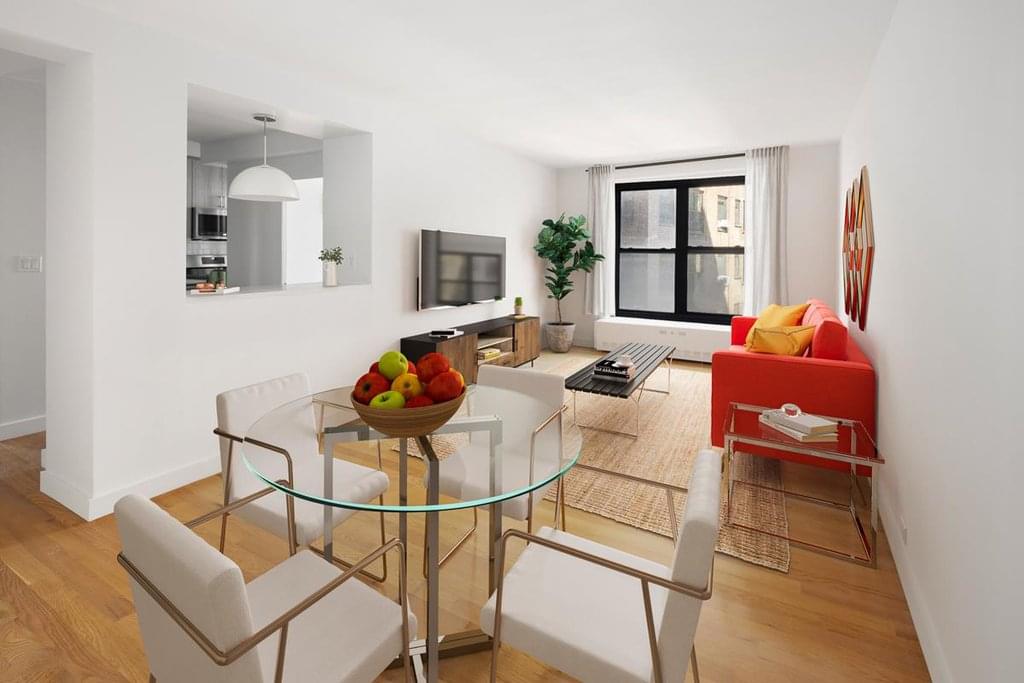 This layout features a large open living area. The beautifully renovated open windowed kitchen boasts white Caesar Stone countertops and white Oak Cabinetry along with full-size stainless-steel appliances and lots of cabinet space. The galley hallway leads to 2 over-sized bedrooms both with abundant closet space. The bathroom as well has been nicely renovated with marble tile floor and all new white clean finishes. The third bedroom can be used as a guest or babys room or office space. The entire apartment has large windows and beautiful new hard wood floor throughout.