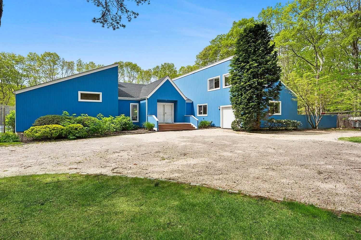 Welcome to 21 Quarter Court - a move-in-ready renovated Westhampton contemporary offering over 3,300 square feet of light-filled living space, just minutes from the charm of Main Street and the area's world-famous ocean beaches. Set on 1.25 lush, private acres, this elegant 5-bedroom, 4-bathroom home is designed for effortless indoor-outdoor living, featuring a sparkling pool, newly refinished tennis court, and an expansive deck ideal for entertaining or quiet escapes. Inside, soaring double-height ceilings and oversized windows bathe the home in natural light. The open-concept great room flows seamlessly to the outdoor space through sliding glass doors, creating the ultimate setting for summer living. The ornare kitchen is both stylish and functional, with a sun-filled skylight, Viking stove, and ample cabinetry and prep space - perfect for casual mornings or hosting at scale. Four bedrooms and three newly renovated bathrooms are located on the main level, including a serene primary suite with a walk-in closet and a flexible bonus room ideal for an office, nursery, or wellness space. The spa-like en-suite duravit bath features dramatic double-height ceilings, skylights, a sauna, and high-end designer finishes - a true private retreat. Upstairs, a sprawling fifth bedroom with en-suite bath offers exceptional versatility - whether used as a guest suite, den, media room, or art studio, the space can flex to suit your needs. The full basement spans approximately 2,400 square feet and offers endless potential. It can be fully finished and permitted to create additional living space, a gym, media room, or whatever suits your vision. An attached garage, currently outfitted as a home gym, adds further flexibility and function. In one of Westhampton's most sought-after neighborhoods, 21 Quarter Court delivers privacy, elegance, and convenience - all just minutes from town and the ocean. Lush. Private. Move-in ready. A lifestyle retreat with room to grow. Welcome home.