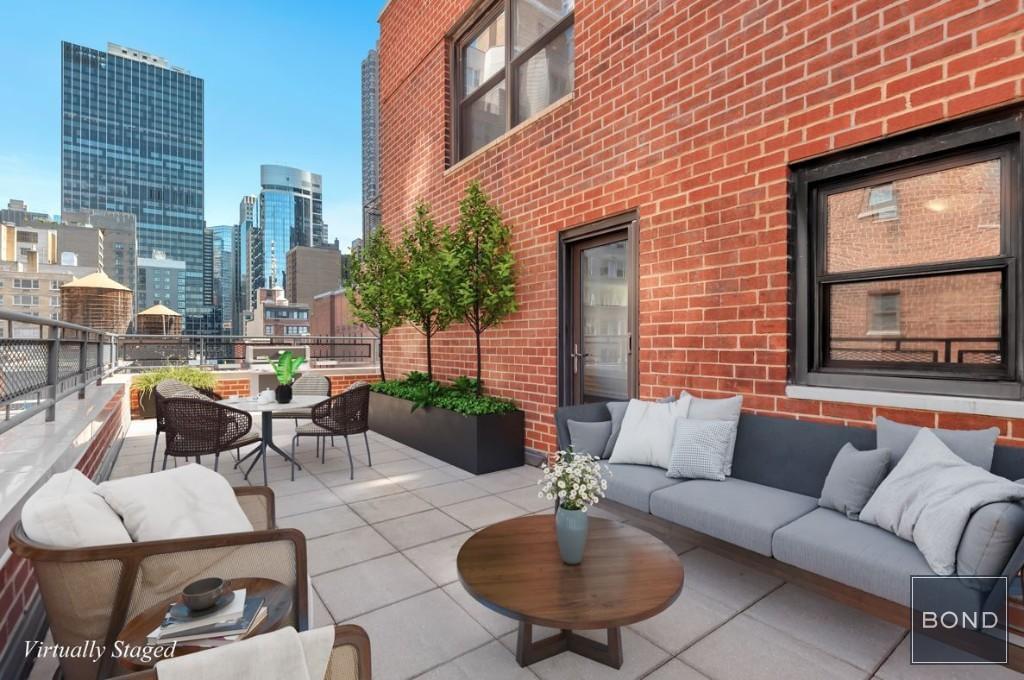 EXPERIENCE THE SPECTACULAR VIEWS FROM YOUR PRIVATE WRAPAROUND TERRACE! Available for the first time in three decades, this newly gut renovated, sunny alcove studio home has a breathtaking private wraparound terrace thats larger than many studio apartments. Easily accommodating an array of furniture options for outdoor dining and lounging, the terrace is perched atop the northwest corner of this excellent co-op building. Indoors youll find new floors and track lighting, a wall of double paned windows, a beamed ceiling and a new kitchen and bath. The elegant kitchen is accented by shaker cabinetry, a quartz countertop, stainless steel appliances, and a mosaic tile backsplash. The bath features porcelain and ceramic tiles, a rainforest shower head, and vanity sink. Storage space is generous and includes a walk-in closet. The rejuvenation of this lovely alcove studio, abundant light and soaring vistas from the terrace make this unique home a must-see. All dimensions are approximate. Video is available.