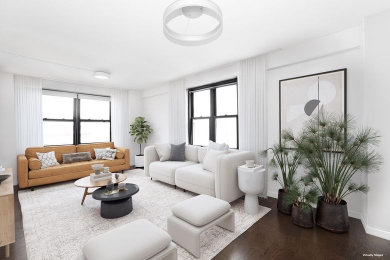 The apartment includes substantial kitchen storage and counter space, along with ample storage afforded by four deep and oversized closets.