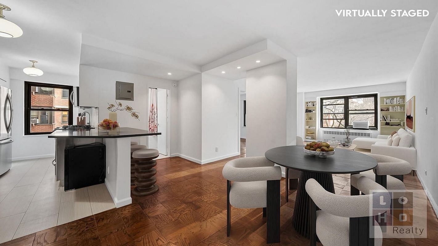 The co-op offers an exceptional array of amenities (additional fees and waitlists may apply), including two private parks with playgrounds and a water play area, a fully equipped fitness center, an indoor childrens playroom, and a 24/7 attended lobby. Residents also enjoy a modern, around-the-clock laundry room, on-site maintenance, a community garden with composting, bike storage, shared workspaces, and a community room outfitted with a contemporary kitchenperfect for hosting events.