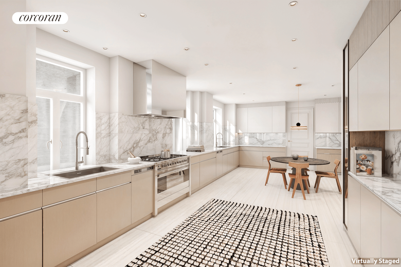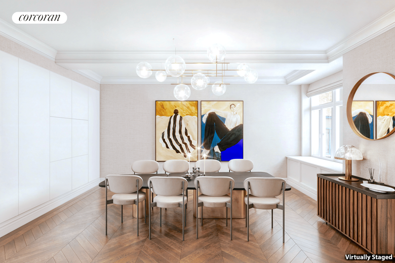 The 25-foot chef's kitchen defies description. Cook for a crowd on an amazing array of professional appliances like a Viking 36-inch range with vented hood, 6-foot Subzero refrigerator freezer, 2 Miele commercial dishwashers, miles of sleek cabinetry and splendid composite counters. In a separate wing reside a serene primary bedroom with wonderful Park views east and north and a handsome bath ensuite. A second bedroom, also with ensuite bath, overlooks the Park. Bedrooms three and four face a pastoral section of West 82nd Street and are served by a generous hall bath.