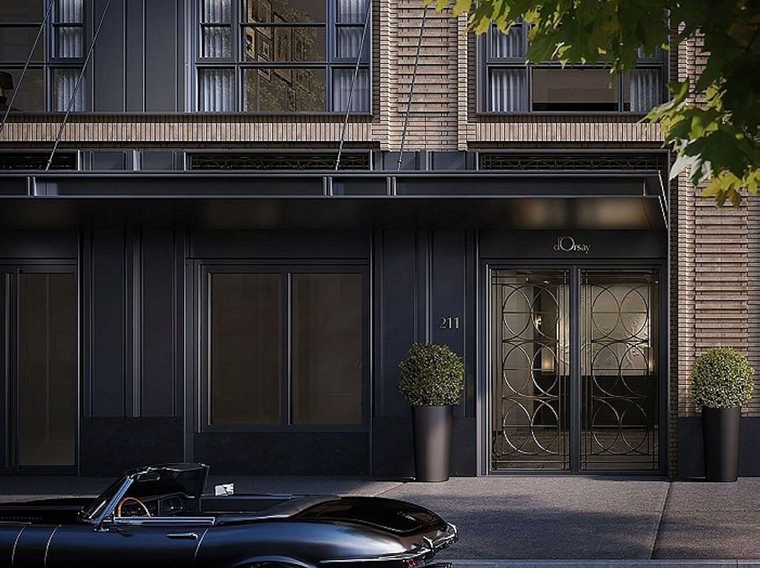 This 1402 square foot two bedroom, two bath plus powder room is bathed in northern light from dramatic oversized divided light windows. The elevator opens directly into a large foyer leading to a very gracious 13'6" x 25'10" Living/Dining Room with an open kitchen. The kitchen has custom bronze painted cabinets, honed slab marble countertops and island, a fully vented five burner Wolf cooktop with a wall oven and a wet bar with a wine refrigerator. The bedrooms have ensuite baths and generous closet space. The D'Orsay is a boutique collection of condominium residences with interiors by internationally acclaimed Jacques Garcia .The light-filled residence has a terrace.