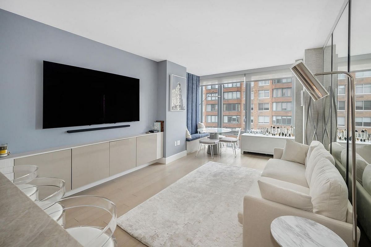 The Sale will include two private Storage Closets just outside the apartment. 9C at 212 West 72nd St. is a move-in ready 3-bedroom 2-bath home with custom interior design by CetraRuddy. The white oak entry door with keyless entry opens into a large entry foyer with a large coat closet. There are 5" plank white oak floors throughout the apartment. The eat-in kitchen, features white matte lacquer cabinetry, Miele appliances, in sink disposal, honed quartzite slab countertops, backsplash, and waterfall edge.