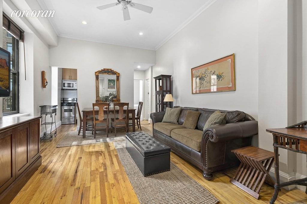 The unit boasts 11-foot high ceilings throughout that were thoughtfully created by the current owner to enhance the overall expansive feeling of the unit. The large living room offers recessed lighting and hardwood flooring with plenty of room for oversized furniture. The western facing windowed kitchen comes equipped with full size appliances and custom cabinetry up to the ceiling for additional storage. Enjoy spectacular sunsets from the king-sized corner bedroom through oversized windows with direct views of the Hudson River and Riverside Park.